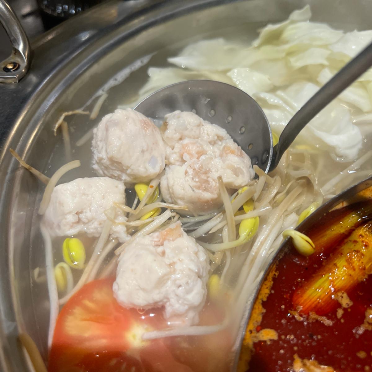 👀ネットの評価を見て、盧記は良さそうだということで、今回は4人で挑戦しました。鴛鴦鍋(麻辣+酸白菜)を注文しましたが、麻辣鍋は小辛でもしっかりと感じられ、香りも辛さも全体のハイライトです。しかし、酸白菜鍋は本当にダメで、味が淡すぎてお湯で白菜を煮ているみたいでした🥲