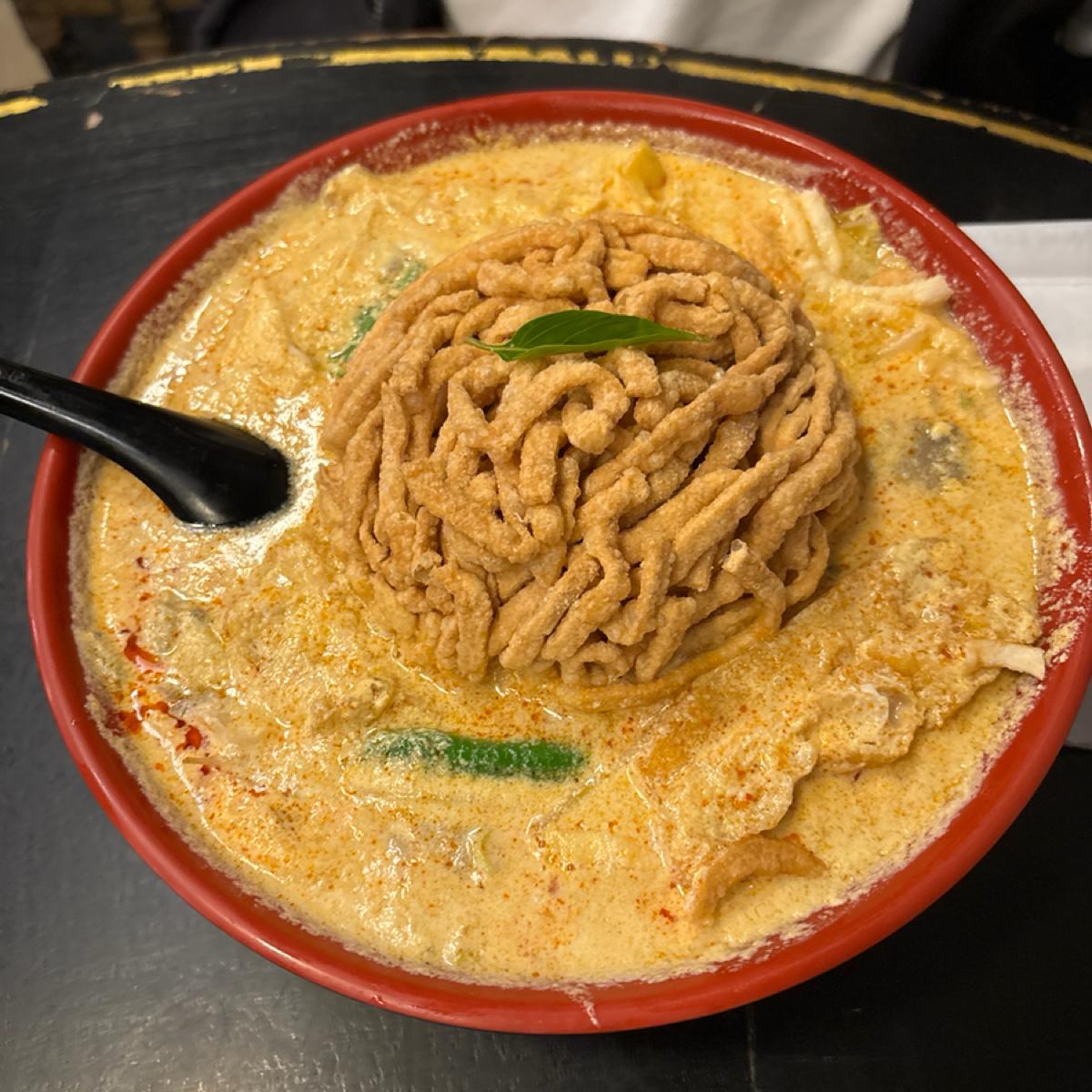 黒犬のラクサ鍋焼きビーフンは、必食のクラシックな料理です。スープは濃厚で、ココナッツミルクの割合は高くありませんが、全体的に滑らかで香辛料と旨味が調和しています。揚げたビーフンがスープをたっぷり吸い込み、食感のレイヤーが際立ち、特別な味わいを楽しむことができます。