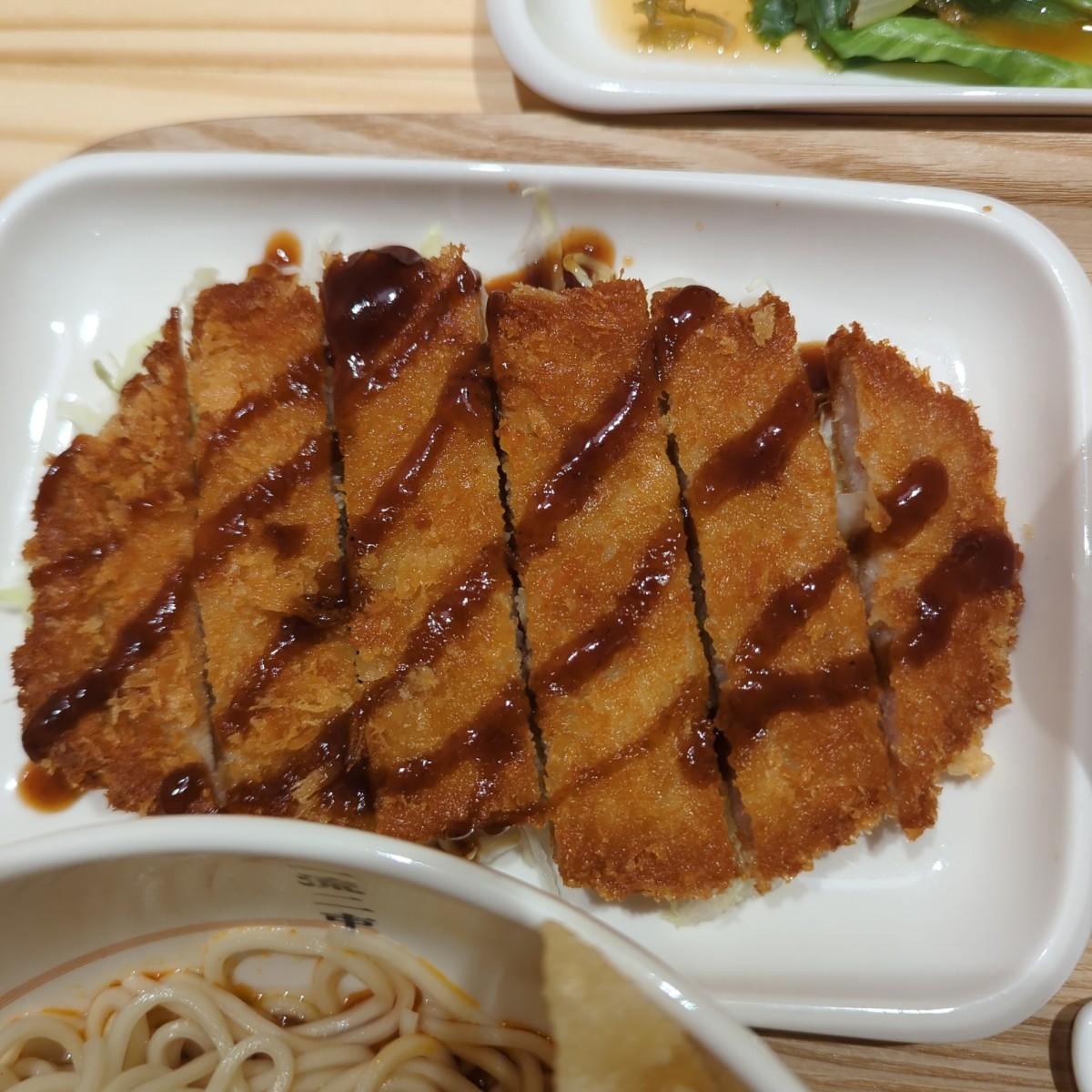 初めてこのお店で食べましたが、全体的にとても美味しいです。定番のポークチョップ、ごま麺、温泉卵が入ったポークチョップ麺のセットを注文しました(定食の問題なのかイベントの問題なのかわかりません。皿は無料で注文しました)。ポークチョップは揚げたてはとてもカリカリで、ポークチョップの皮はかなり美味しかったです。ただし、数分経つと皮のパリパリ感が失われ始めるので、早めに食べるのが最善です。麺には十分なコショウとゴマが入っていましたが、一番上の部分はおそらく揚げワンタンの皮で、味がなく、おそらく食感を追加するためのものでした。砂糖中心の卵はごく普通の味ですが、10元ということでCPはかなり高いと思います。最後の緑の野菜の味付けがとても好きで、少し塩味と甘さが本土の女の子の味を感じさせます。