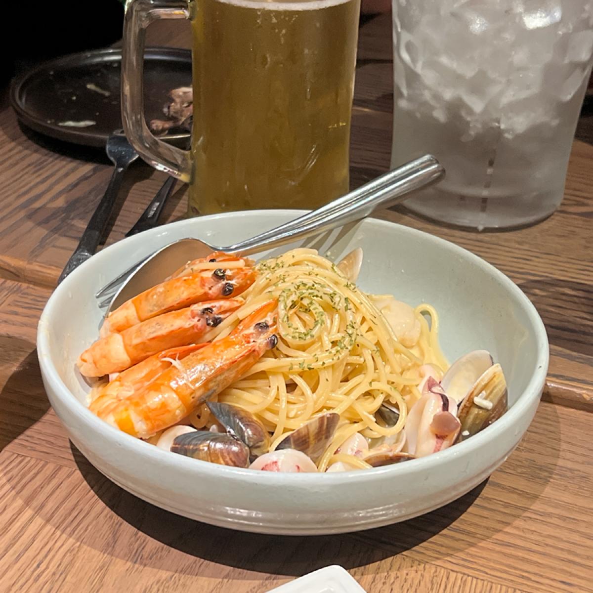 金色三麥はB1に位置し、一階には勤美店にしかないセルフカクテルがあります!店内の雰囲気では音楽を聴きながら、スポーツ観戦やレース観戦が楽しめます🏎️。今回は7人で訪れたため、座席が非常に混雑していました。各料理が来るたびに急いで食べなければならず、置く場所がなくなってしまいます。各テーブルの間隔もとても狭いです~