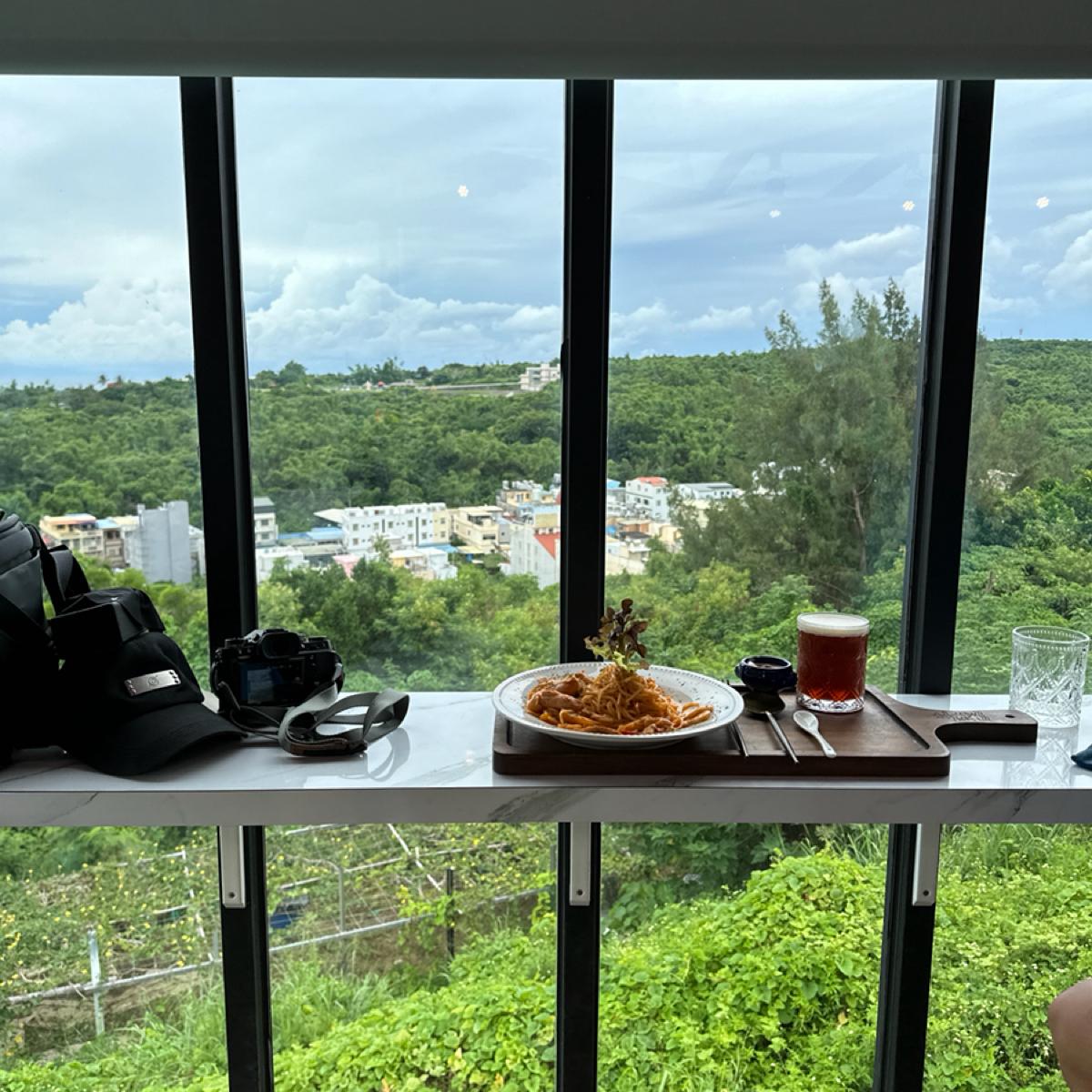 食事の雰囲気はとても楽しく、特に店の外にあるテントエリアは暑い天気にもかかわらず、店側がテント内に冷房を設置してくれているため、温度が少し下がります。大きなガラス窓を通して見える景色はリラックスさせてくれます。カフェは大きなガラス窓を採用しており、どの角からでも青い海の景色が見え、心が晴れやかになります。