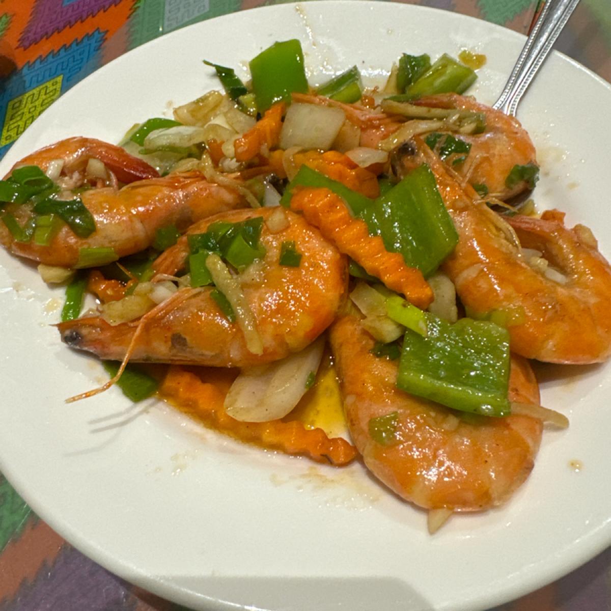 メノナイト病院のすぐ近くです!タケノコの卵とじと空心菜のエビペーストがとても美味しいです。