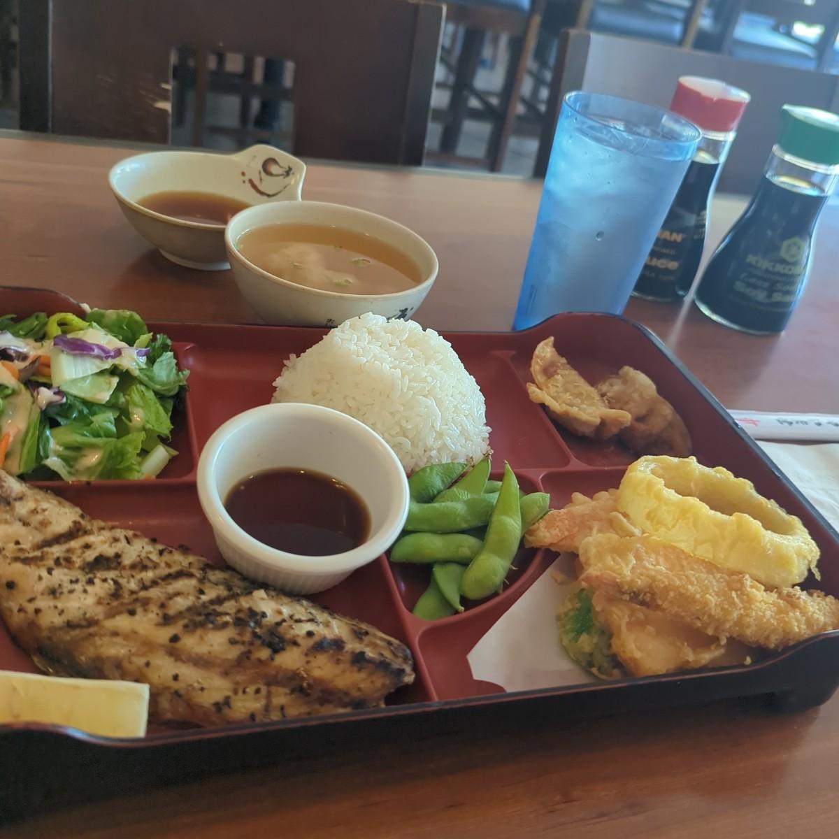 昼食便当(ランチ弁当)は午後3時まで注文可能で、本当に良かったです。自分自身のために塩焼きサバの弁当を注文しました。さらにドラゴンロール寿司をテイクアウトで頼みました。これは私が日本料理を安全に選ぶ選択肢です。
