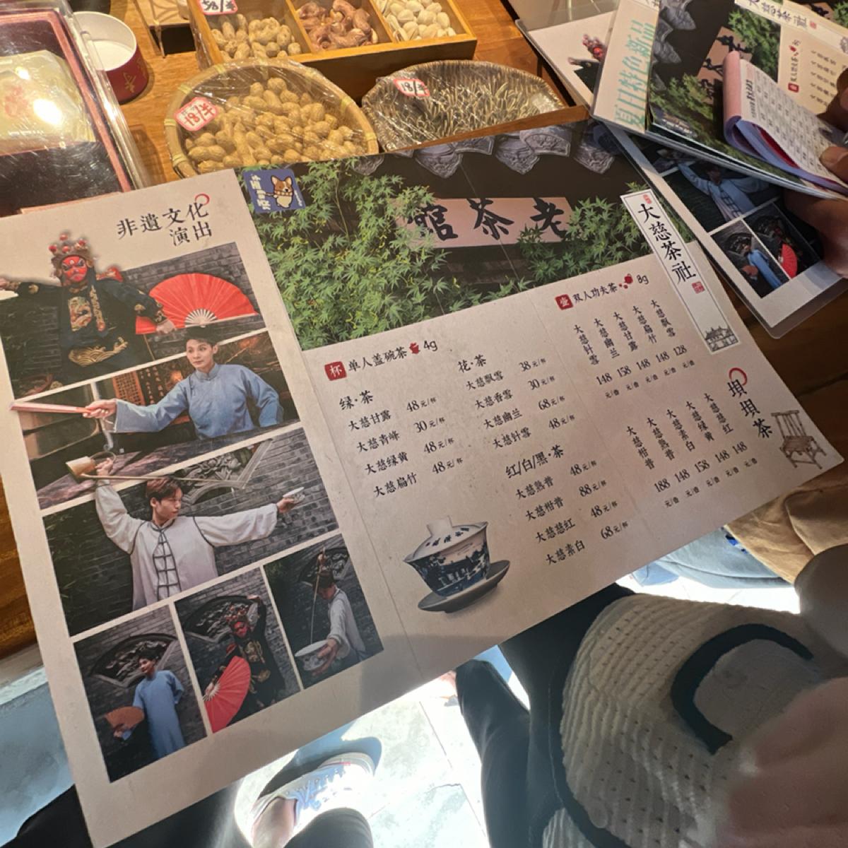 この場所は大聖祠の中にあり、非常に雰囲気が良く、中はとても広く人がたくさんいます。変面やその他の伝統的なパフォーマンスもあり、とてもリラックスできる空間です。お茶は無限に飲めるので、素晴らしい午後を過ごすことができます。