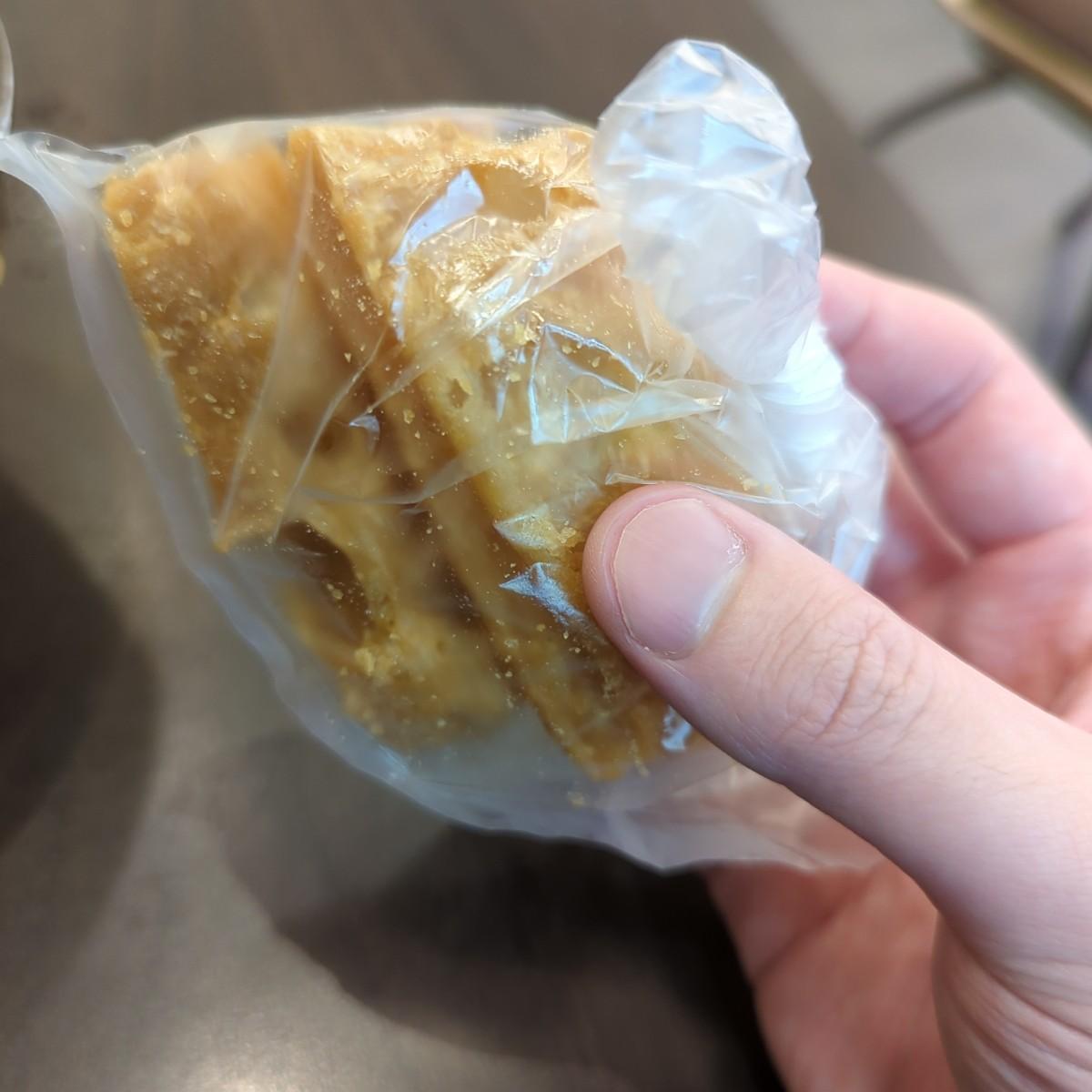 サクサク〜少し硬めのスティック生地を揚げたもので、スープを吸うととても香ばしく美味しいです。