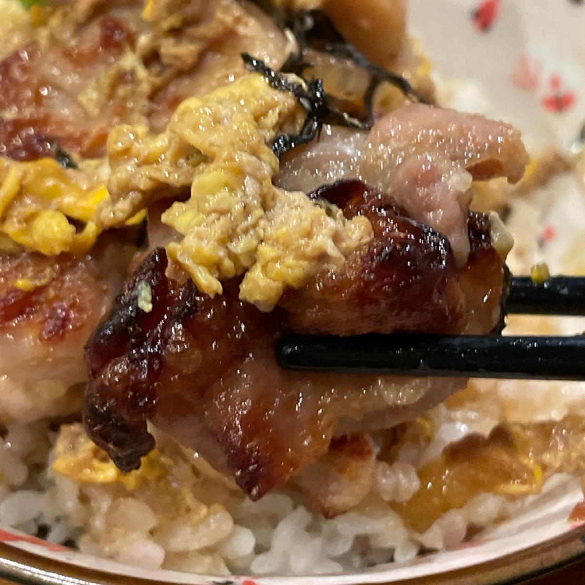 🔹鶏もも肉のグリルはレモンの風味が強い(でも本物のレモンという感じではない) 残念ながら、肉には卵液がかかっており、丼のタレは少し甘めです。