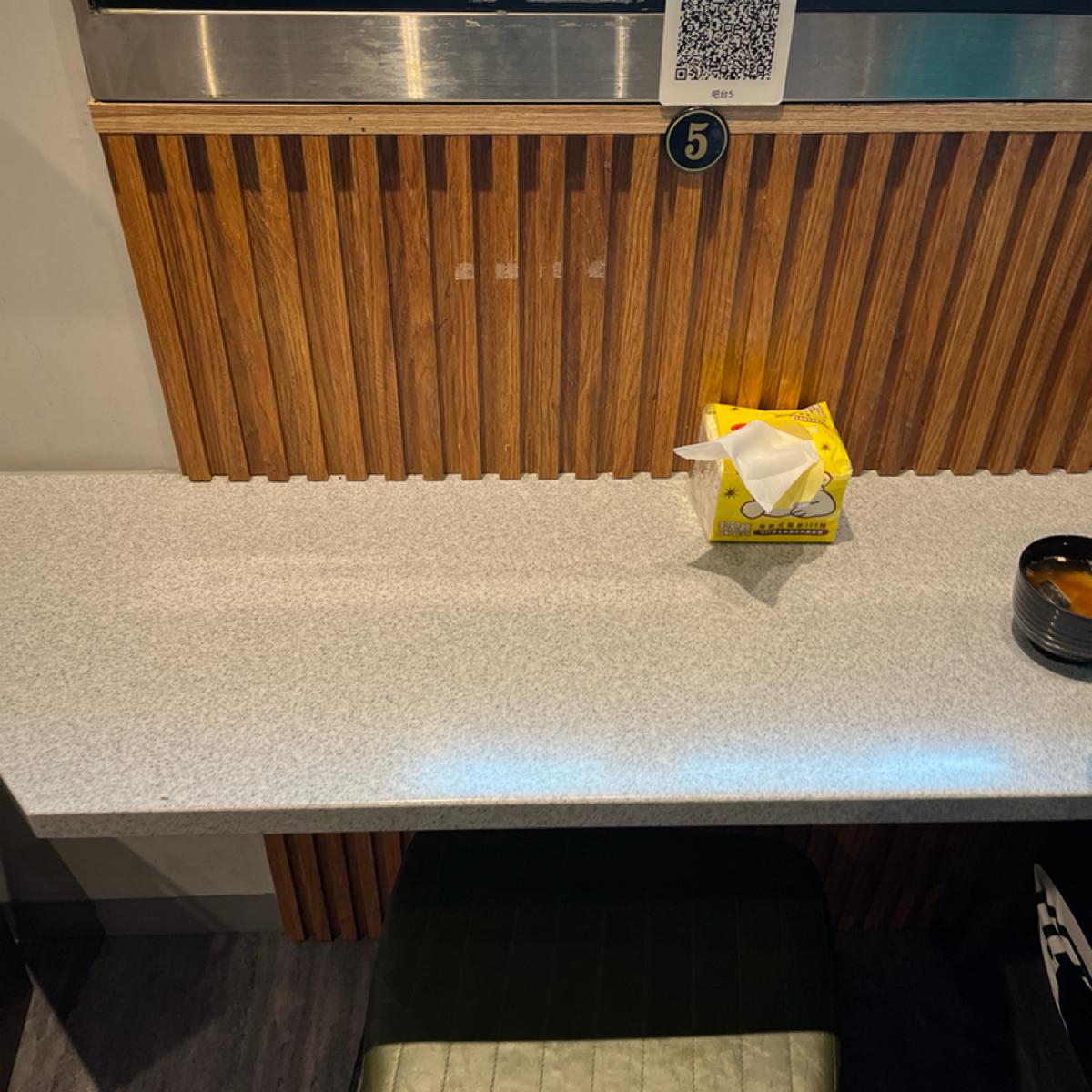 清潔感のある明るい環境で、席は1人席と複数人席、1人席が5席あり、ドリンクマシンや食器もセルフサービスでご利用いただけます。