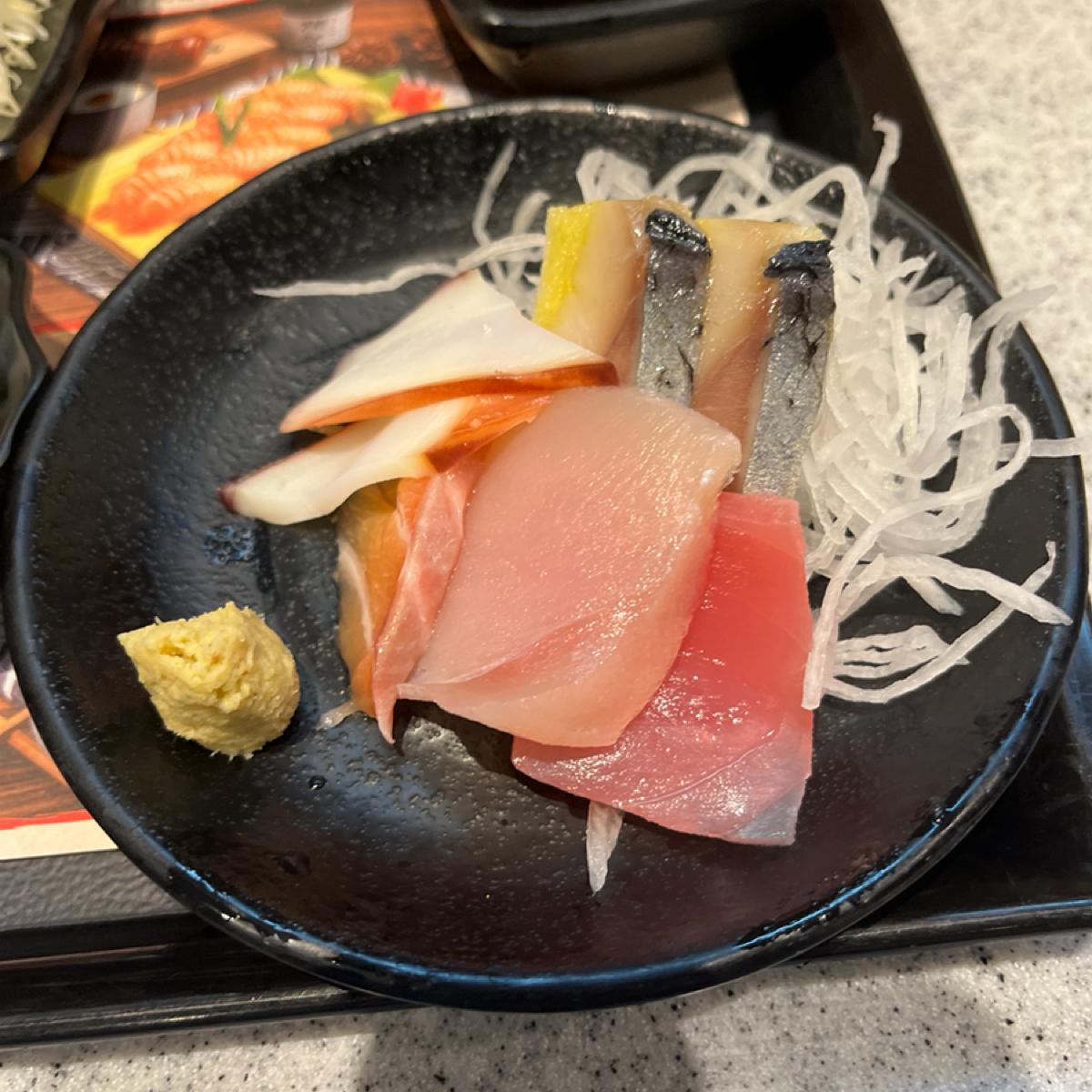食事 カツ茶漬け+刺身盛り合わせ カツはサクサクで美味しいし、数口食べてもコーラで流れ落ちて美味しい。 . 濃厚な刺身がぴったりです。