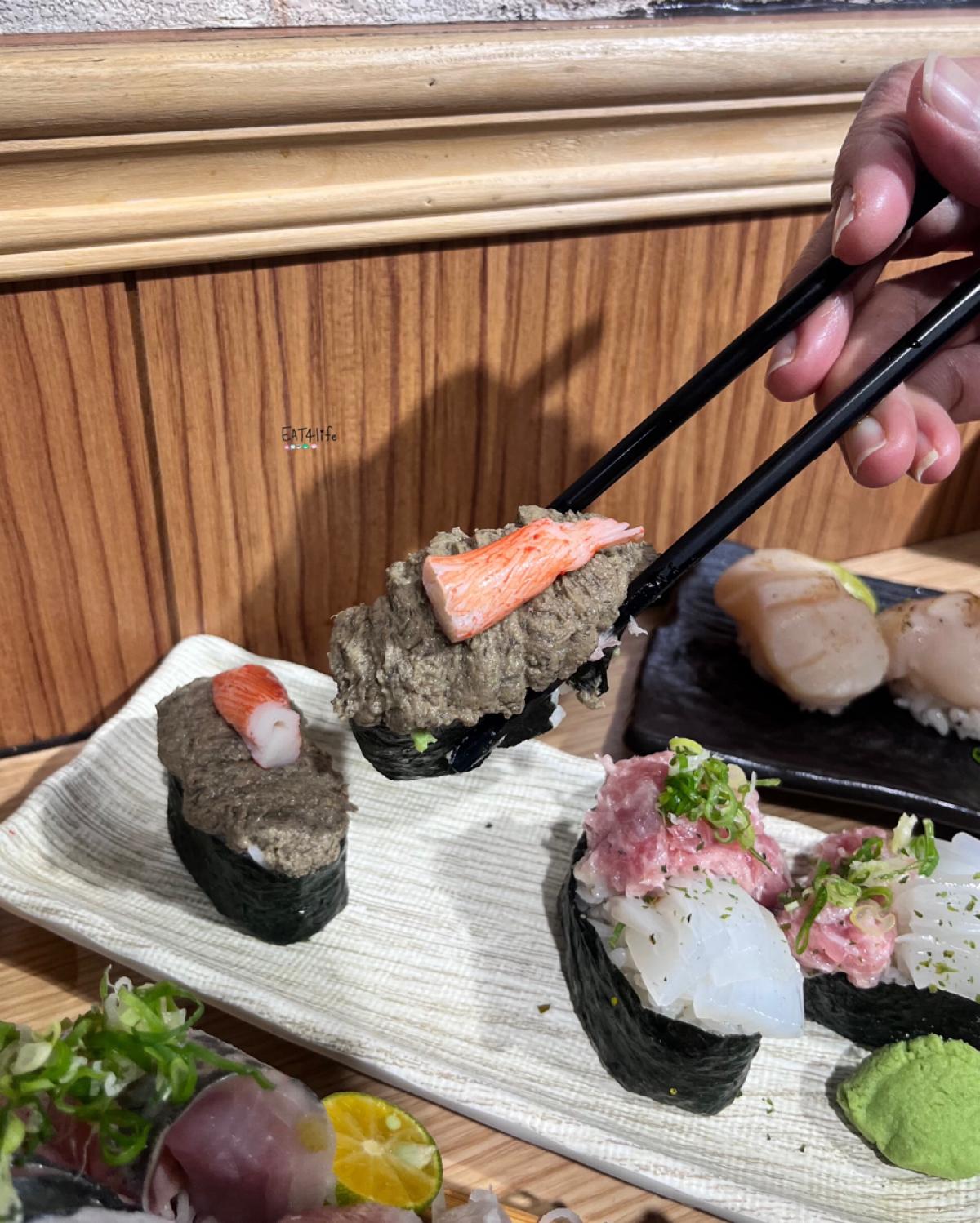 この軍艦は本当に豪華ですね、マグロは超大きなボールで、スプーンで支えないといけない寿司です。イカは滑らかで弾力があり、その食感がとても好きです。そしてマグロとの食感の対比が素晴らしいです!