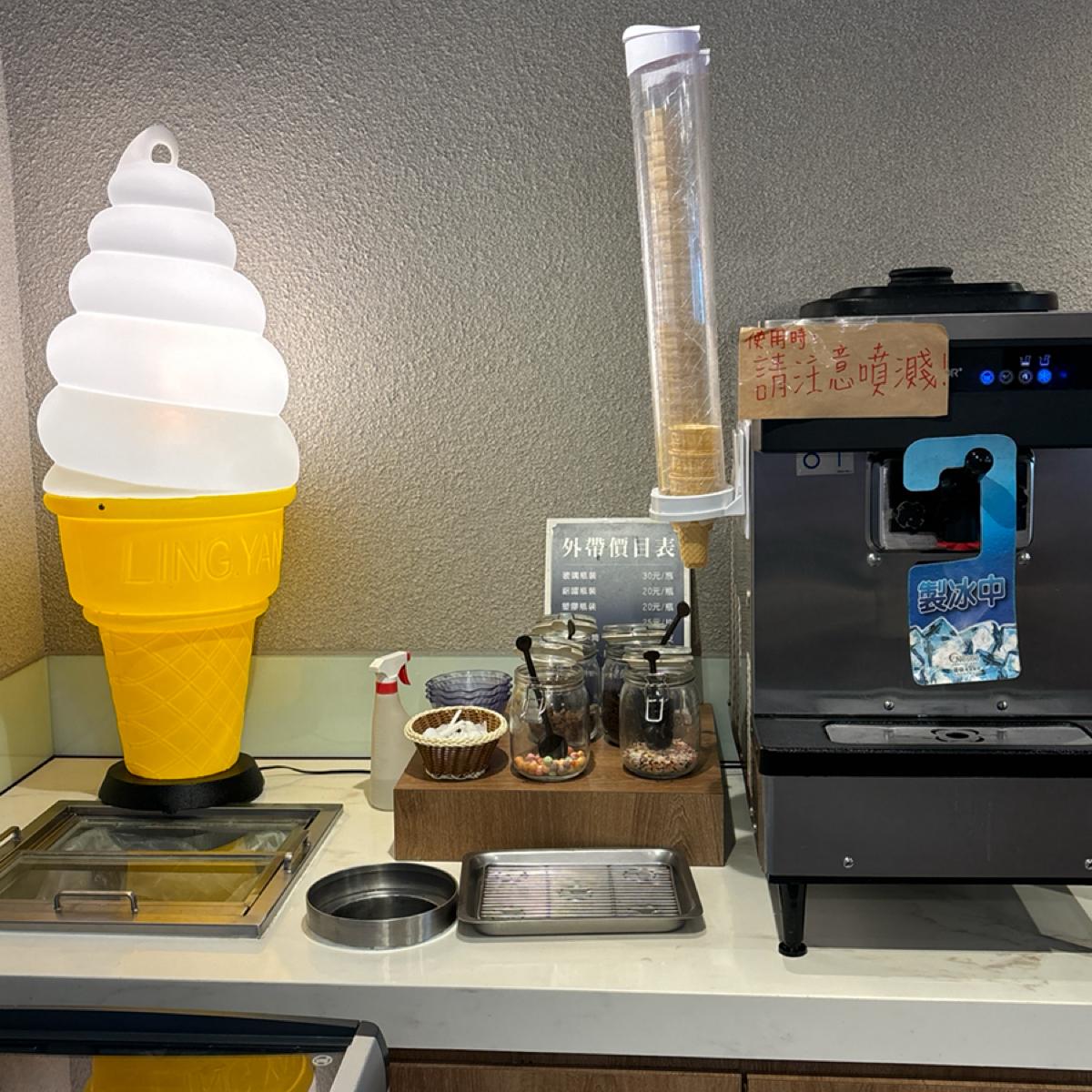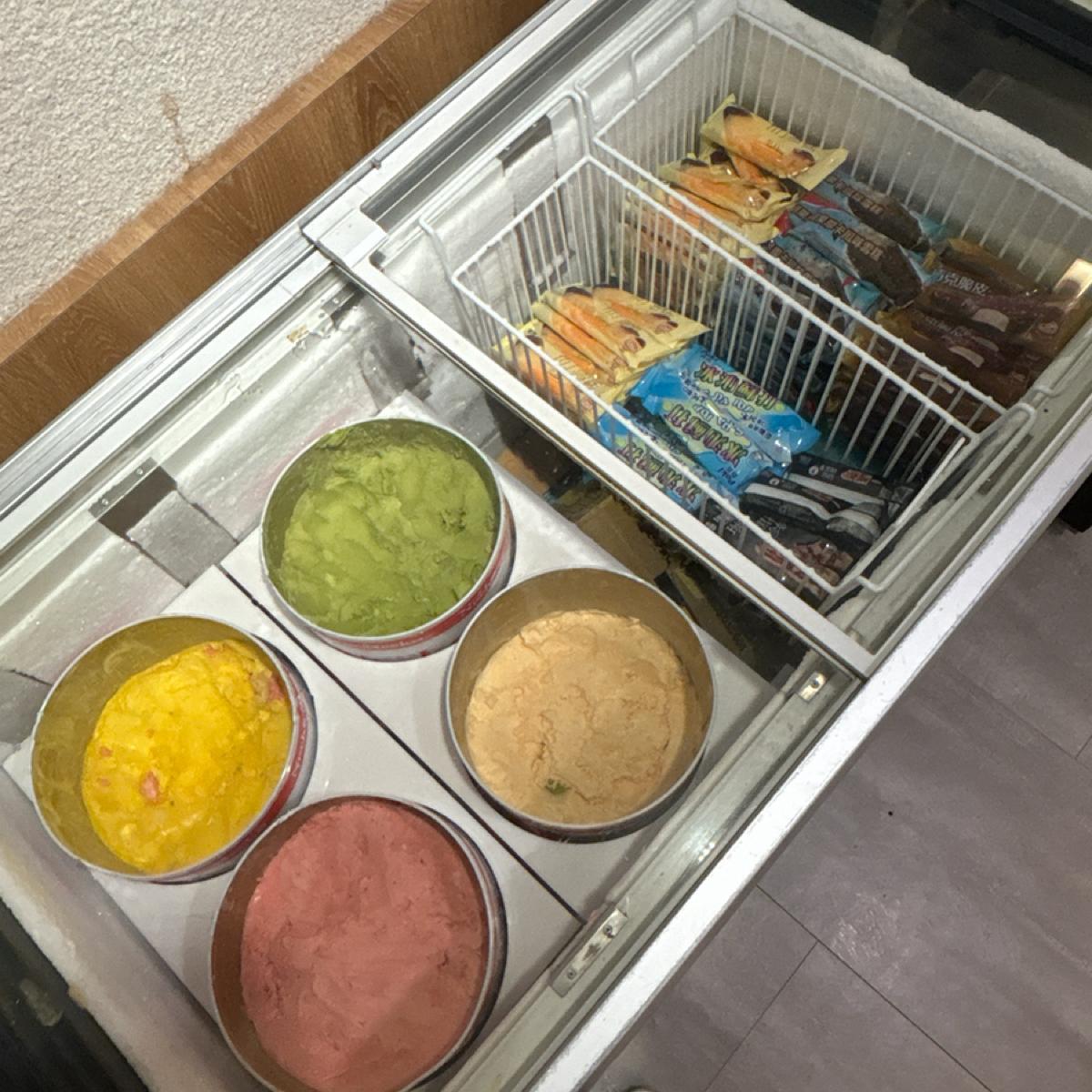 フルーツ、自己サーブのソフトクリーム、桶入りアイスクリーム、各種ブランドのアイスキャンディ、小さなケーキ、かき氷、タピオカミルクティー、プリン、中華豆花、綿菓子...など。
