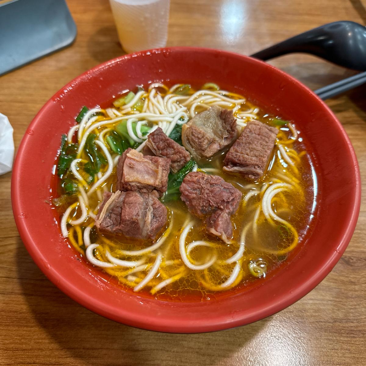 清潔な雰囲気の美味しい牛肉麺店です。メニューには餃子や牛肉麺があり、冬瓜茶のセルフピックアップも可能です。9時まで営業している数少ない麺類店の1つです。時。