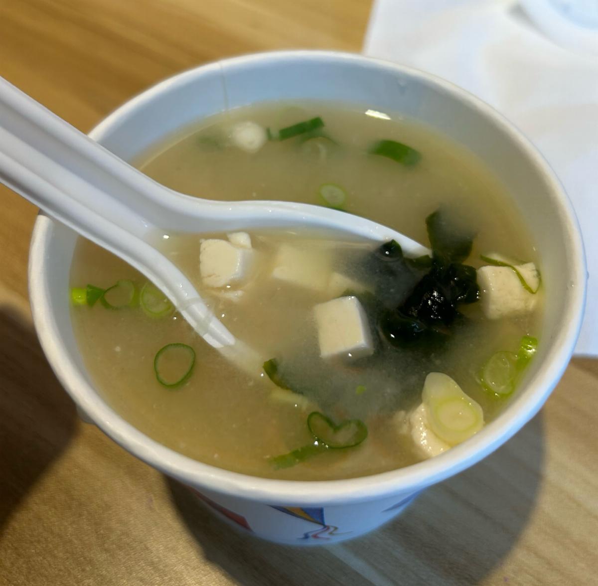 味噌汁の具は普通の豆腐と昆布ですが、味は薄すぎません。