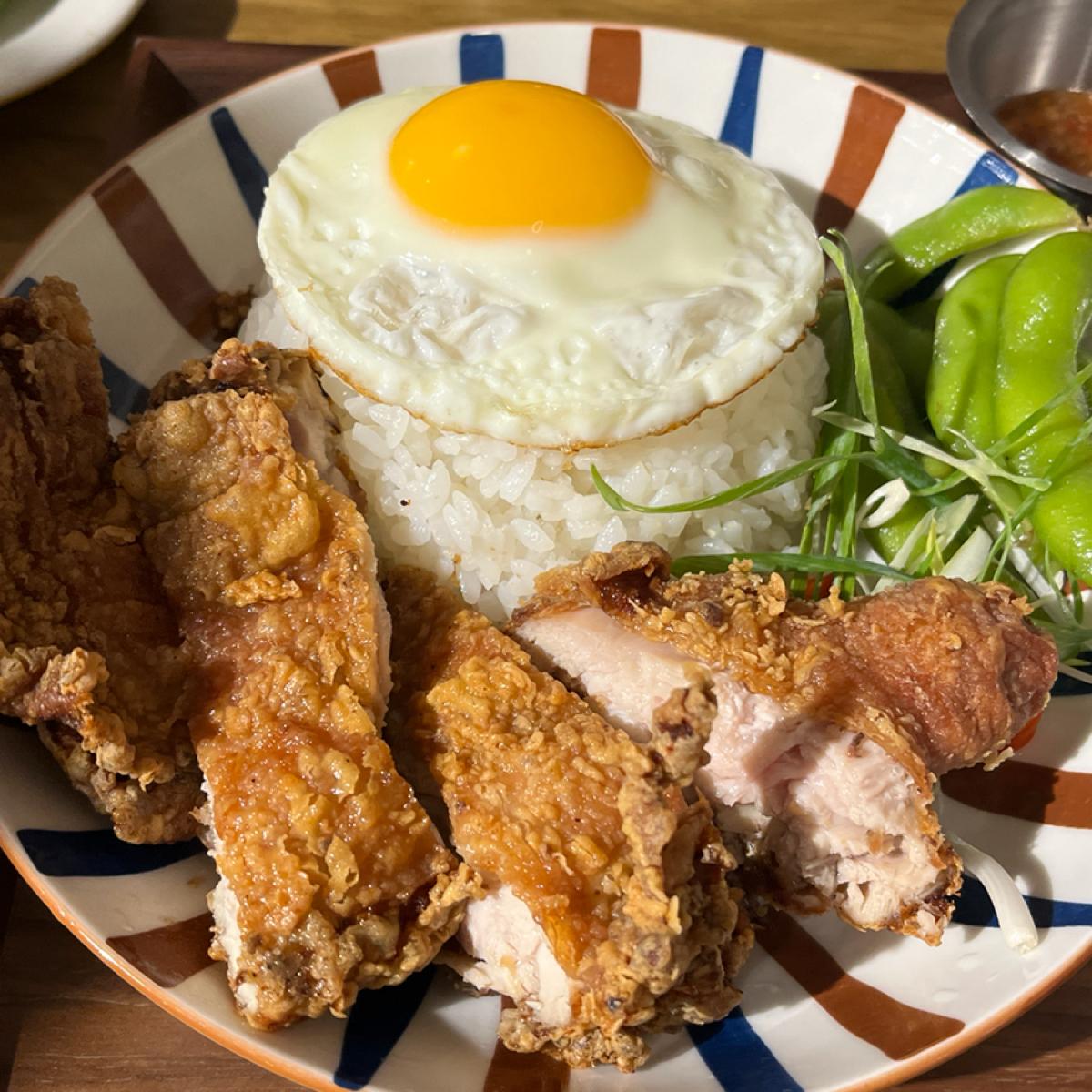 定食の部分には、麻辣鶏、油鶏、煮豚などがあります。私個人の意見では、定食の肉の量が少し多いと思います。もし二人の女性であれば、一緒に一品を分け合えると思います。おかずはほとんどの品目が二つの小皿を提供し、スープも一杯ついてくるので、全体的に食べ終わると非常に満足感があります。