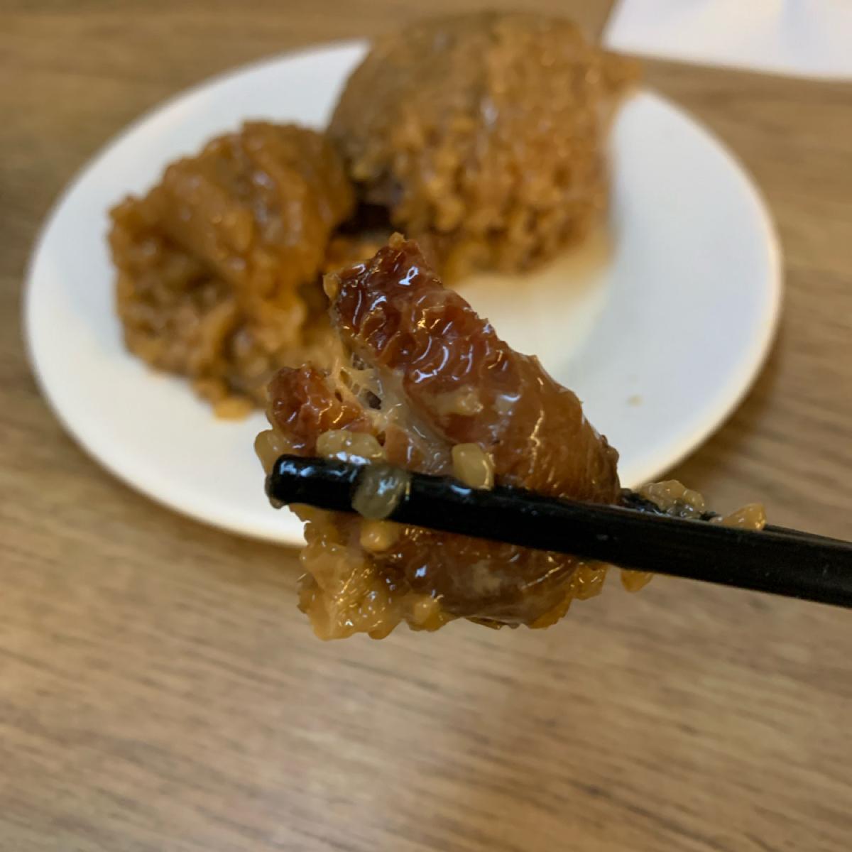 湖州鮮肉粽は、少し湿っていて柔らかすぎる印象を与え、形もあまり好ましくないですが、米は確かに柔らかく、肉の塊は全て赤身肉でしっかりと味が染みています。