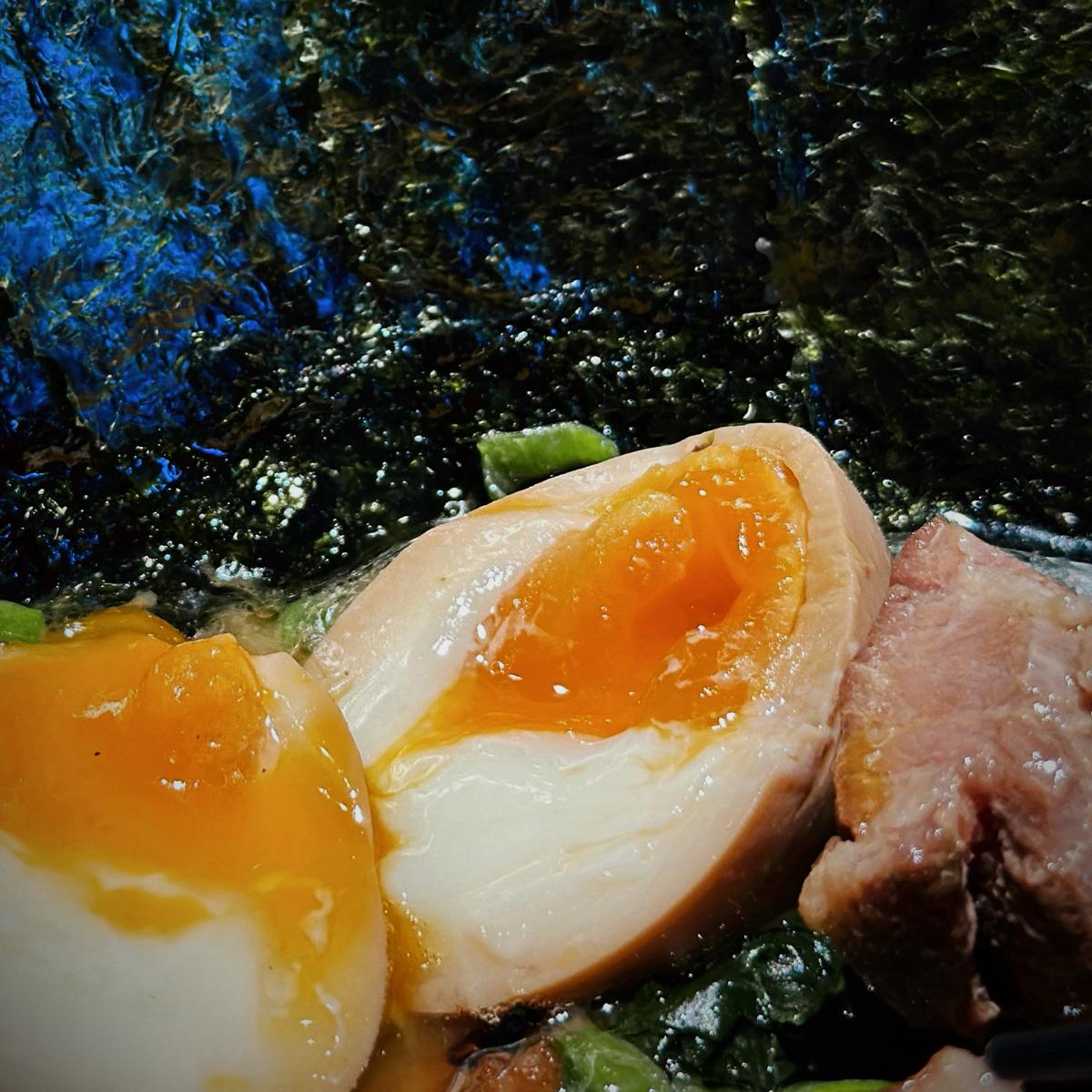 味玉が非常に完璧で、ほぼ流動体の卵黄がその証明です。