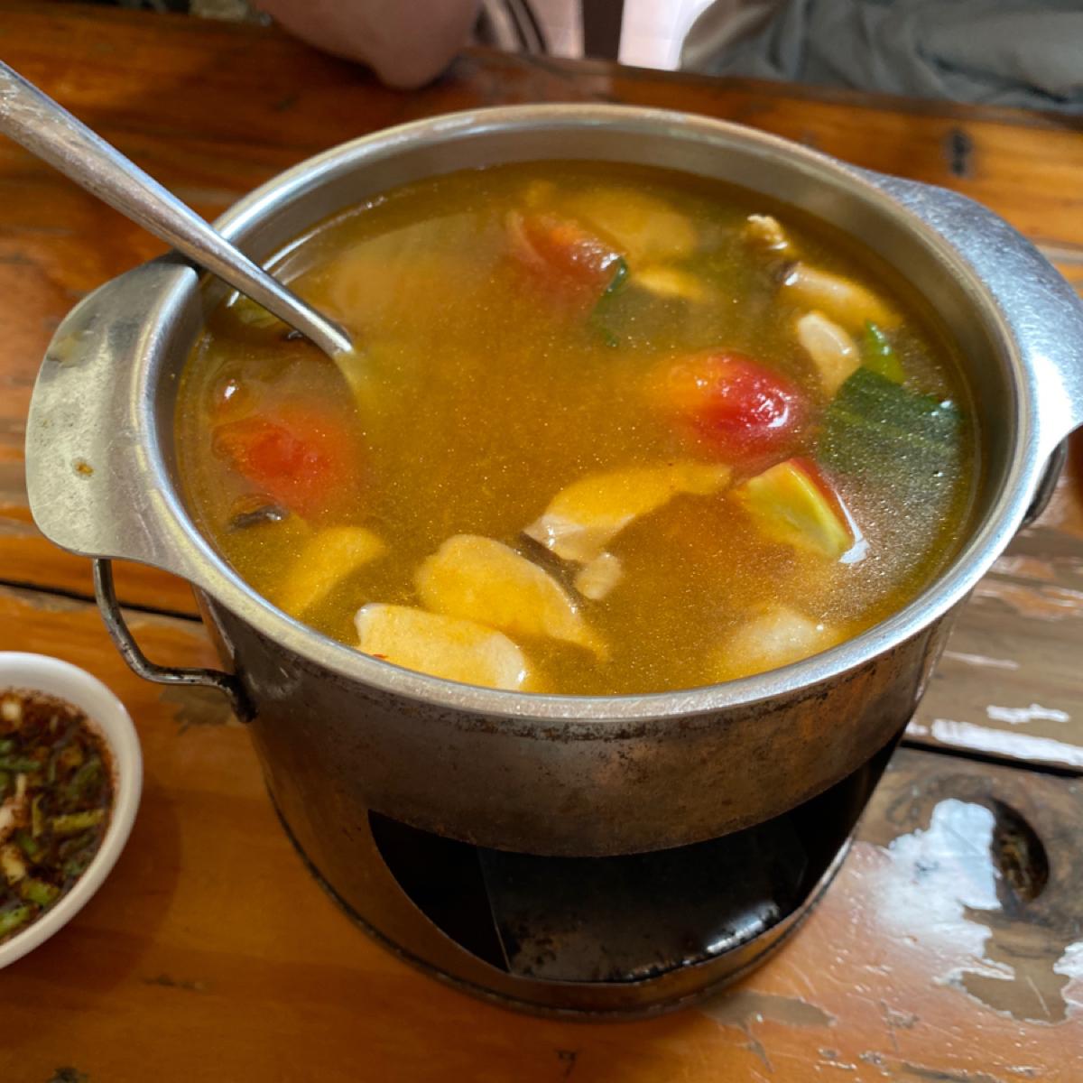 逆に単品で頼んだローストポークはとても美味しかったですし、チキントムヤムスープも美味しかったです!このレストランでは青パパイヤのサラダも注文しました。唐辛子に注意してください。誤ってここで唐辛子を食べて気を失いそうになりました。