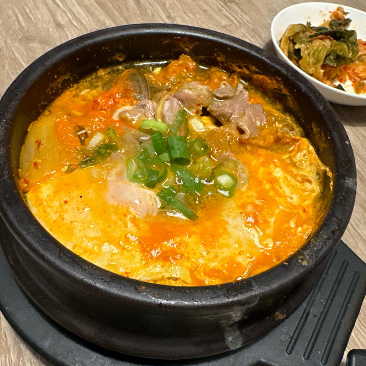 「キムチと豆腐の鍋(牛肉)」 メニューには辛いと書いてありましたが、辛さはそれほど高くなく、ほんの少しかもしれないと感じました。 スープの味は許容範囲で、刺激的ではなく胃を温めます。 、 かなりいい