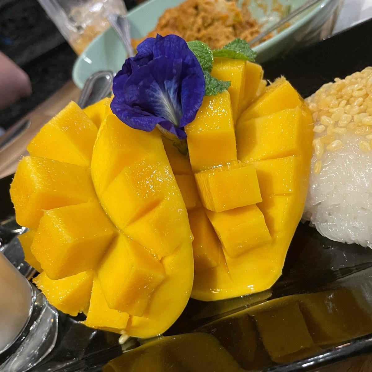 基本的にマンゴーともち米を混ぜて食べ、ひんやりと甘いもち米団子の味わいがあります。