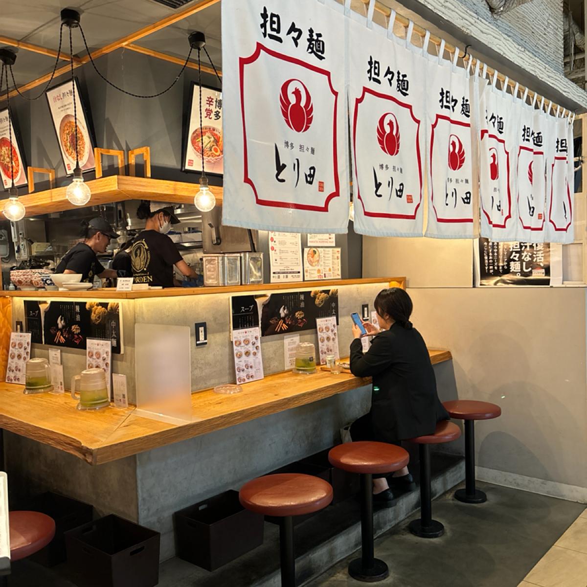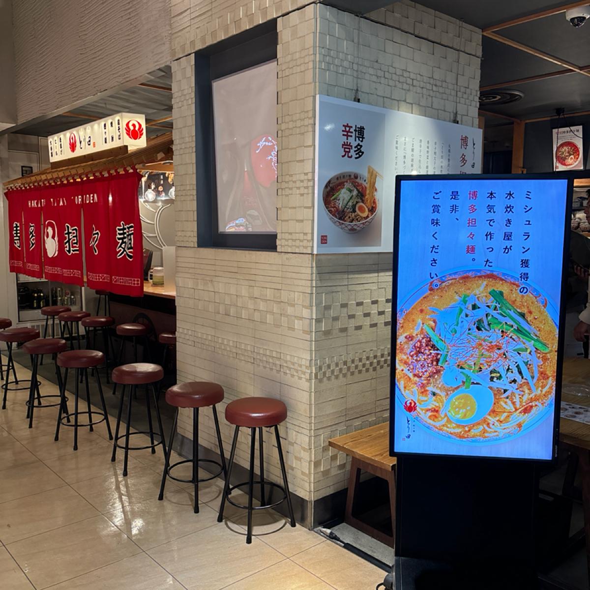 🍜博多の高級水炊き鍋の名店からの香辛担々麺!交通が便利で、食べ終わったら買い物を続けましょう!