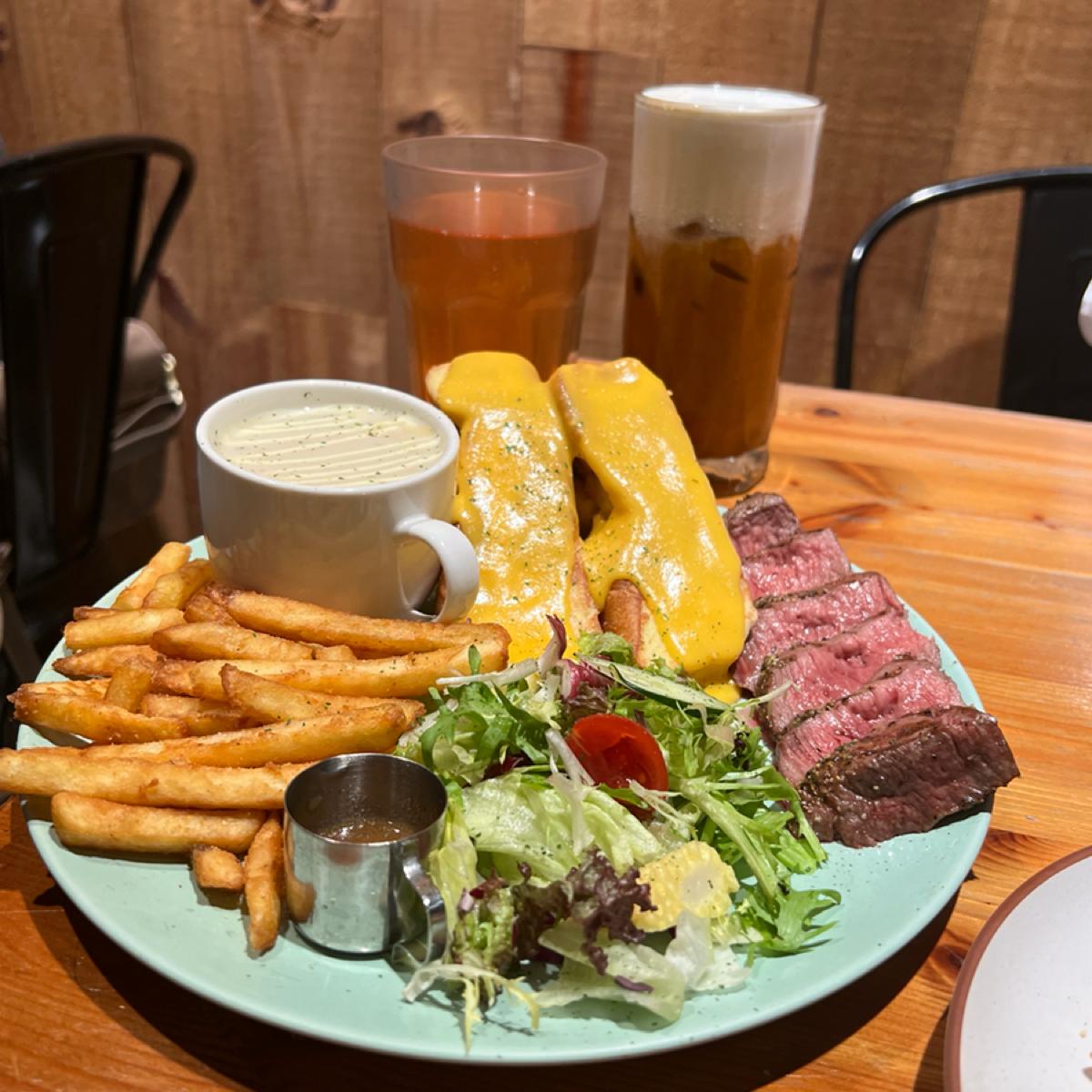 内容には濃厚なスープ、クリスピーポテト、和風野菜サラダ🥗、チーズブレッド、そしてステーキが含まれています。ステーキは非常に柔らかくジューシーで、チーズ🧀の量もたっぷりで、味を引き立てるだけでなく、見た目も美しく写真映えします。ボリュームも十分です~