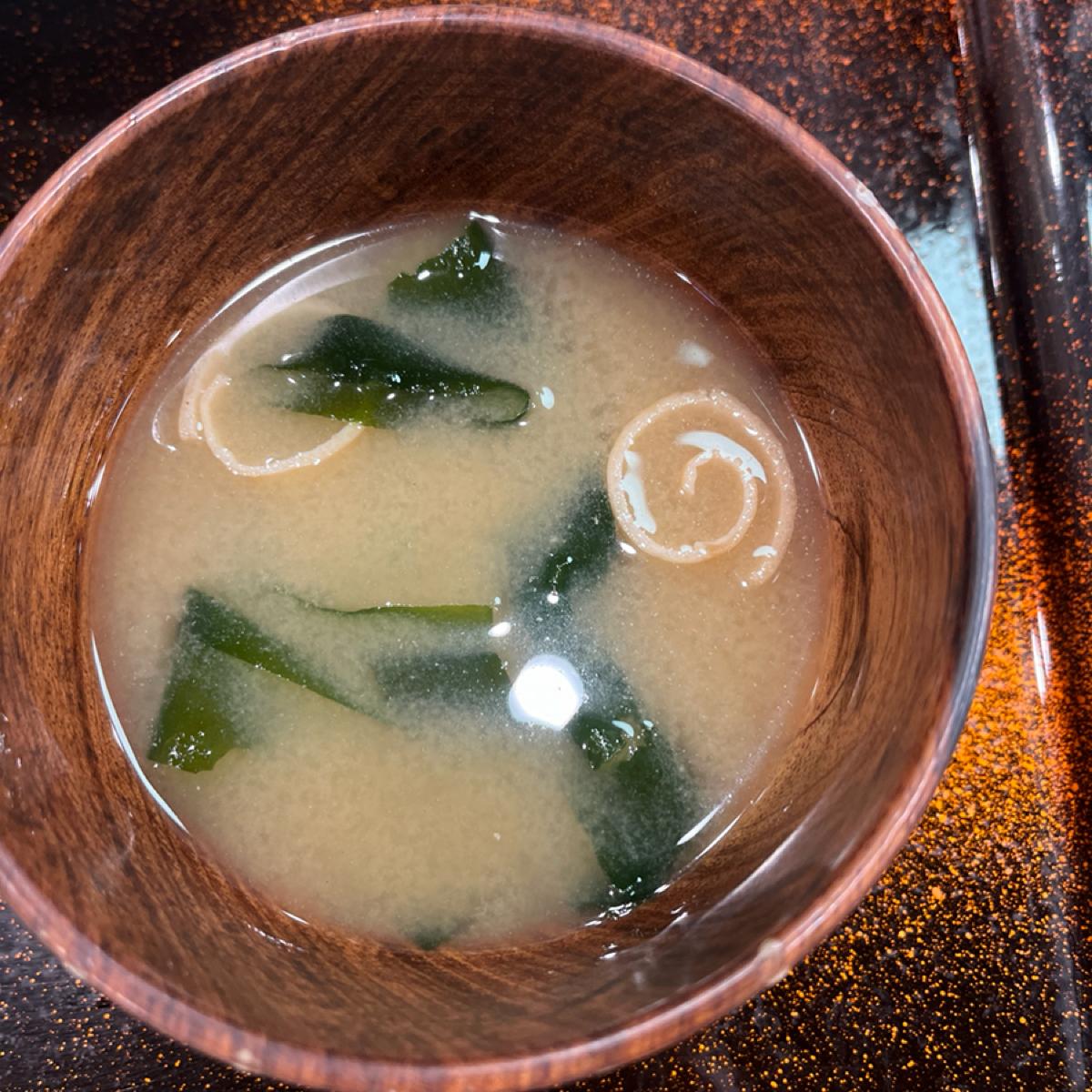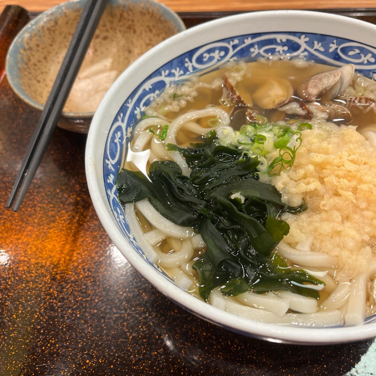 うどんに関しては、麺本体が Q 度を維持しており、これは非常に印象的です。スープは、ハマグリの旨みたっぷりのスープです。少量の昆布と糠が添えられており、全体が単調になりません。ただ、味付けがしょっぱすぎるのが難点で残念です。