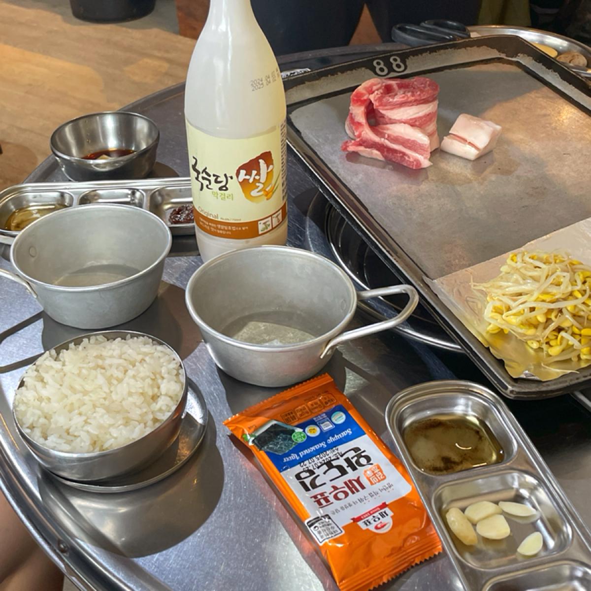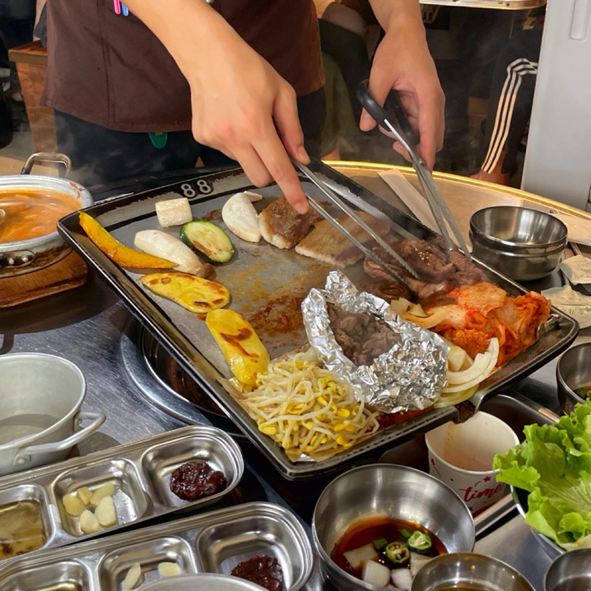含まれるもの(生野菜、混ぜたネギ、キムチ、黄豆芽、醤油、サラダ、小菜)