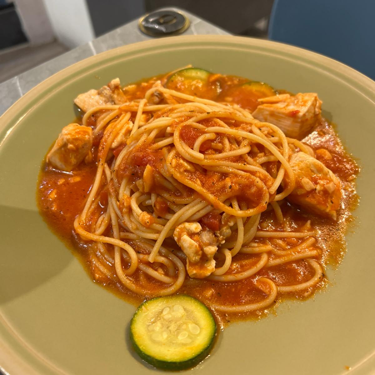 🔹手作りトマトやわらか鶏肉のパスタ $180 + セット $110