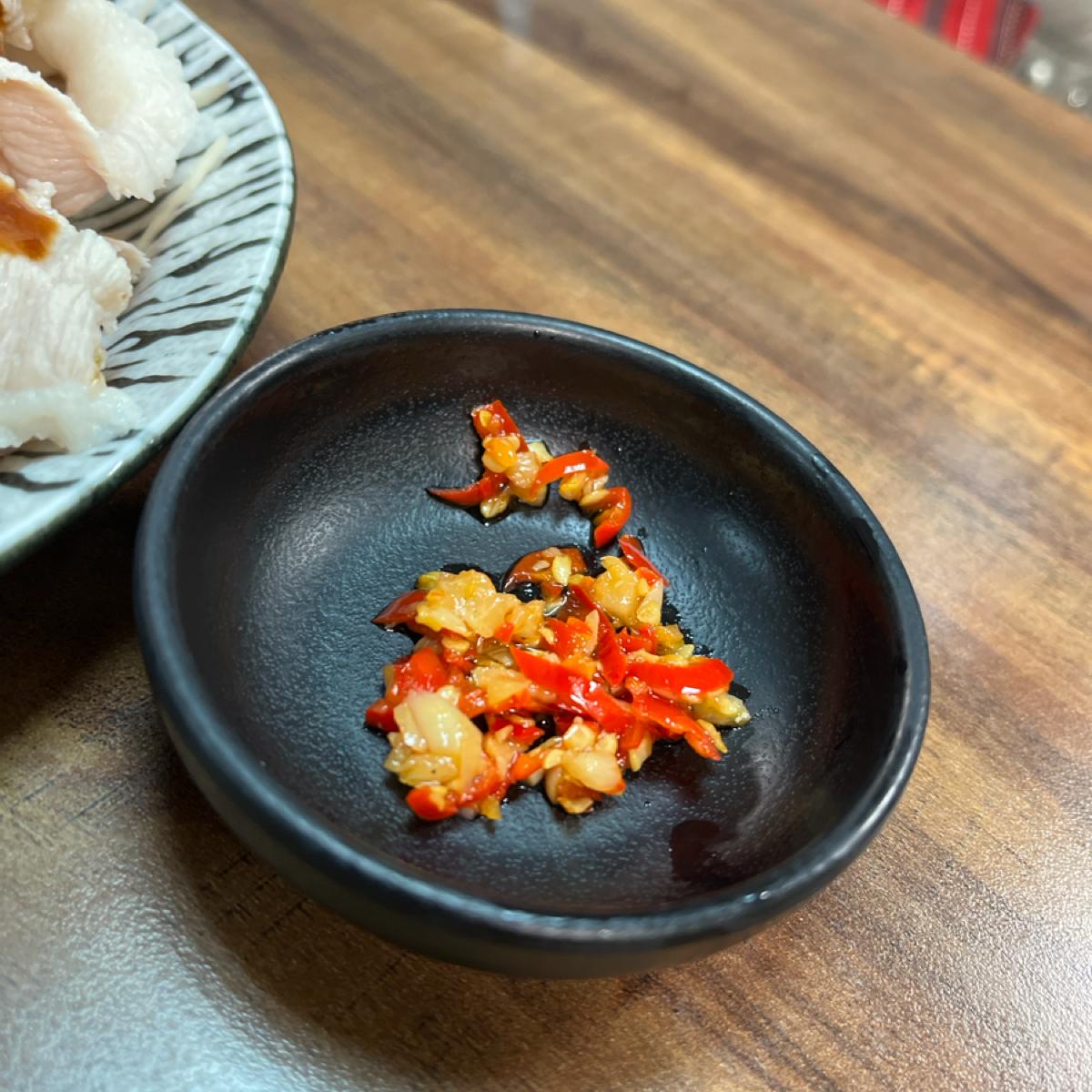 彼のチリはとても辛いですが、小さなお皿に盛られているので、麺を食べるととても風味豊かになります。