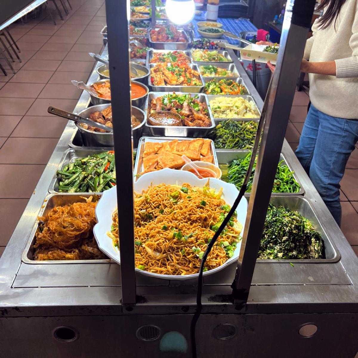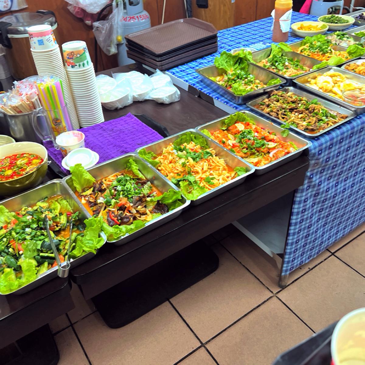 今回は揚げインスタントラーメン、空心菜、グリーンカレー、ローストポーク、チキンステーキを注文しました。