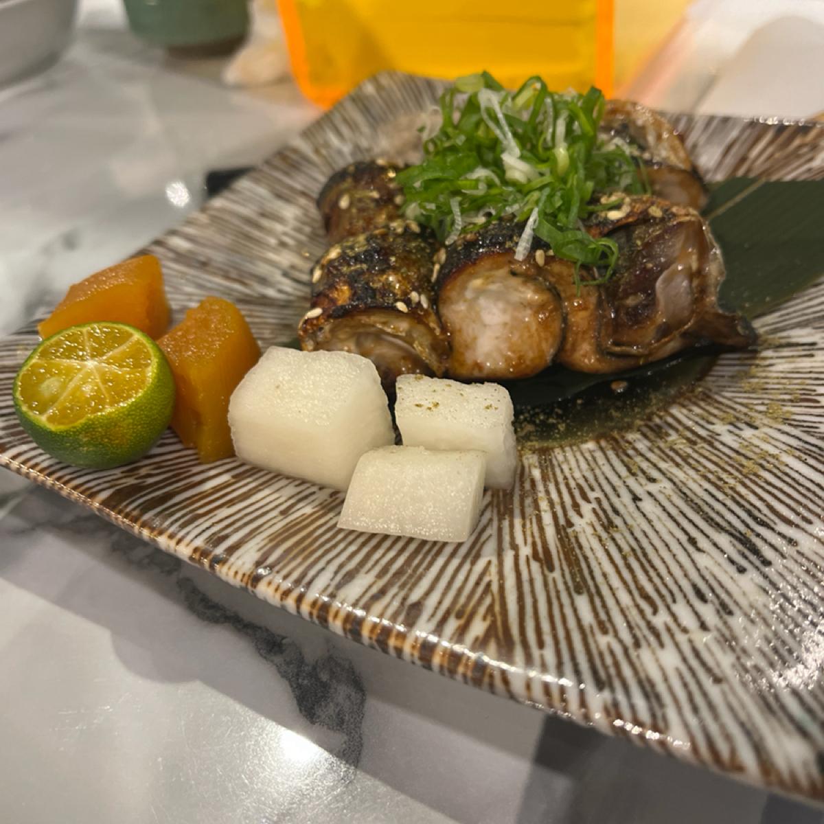 究極の骨なしさんま(一品料理) 通常のさんまの骨を取り除き、巻いて自家製タレを少しつけて焼くお店の人気メニューです。とても柔らかくてジューシーな秋刀魚の風味がソースとよく合い、味付けは濃くなく魚そのものの鮮度が際立っています。強くお勧めします。