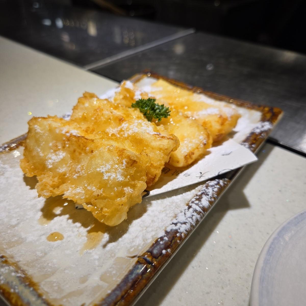 表面はさつまいもフライのような感じで、甘さが少し強めです。