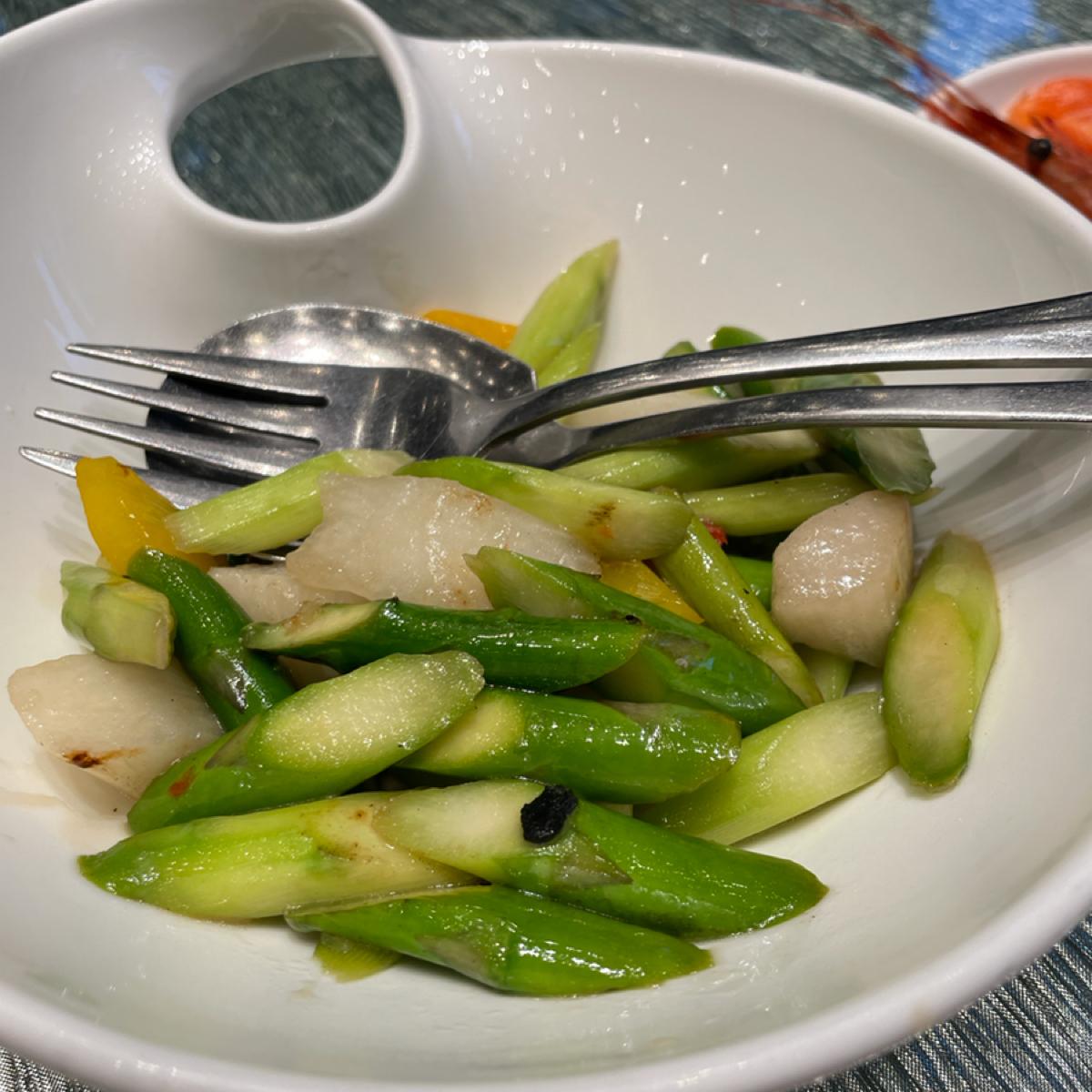 山芋炒めアスパラガス:美味しく、山の珍味としての爽やかな代表です。塩加減も適度です。
