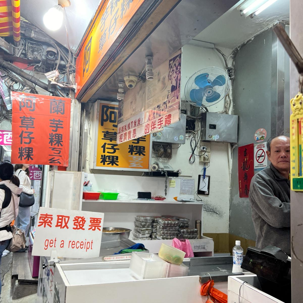 阿蘭草仔粿は九份の人気名産の一つで、基本的に草仔粿と芋圓の二つが九份の有名な名産品と言えます。行列ができるほどの人気で、美味しいです。現場では約10人が忙しく製作しています。休日は行列が長いですが、料理の提供は意外と早いです。菜圃米草仔粿を食べたことがない人には、この皮が一番柔らかくてモチモチで、内具と味の組み合わせがちょうど良いです。誰かが来たら、外で持ち帰って食べるのをお勧めします。紅豆草仔粿も無敵で、甘さのバランスが絶妙です。芋巧粿は本物の芋がしっかり使われており、現場で茶楼でお茶と一緒に食べるのが最適ですが、持ち帰りできないのが残念です。
