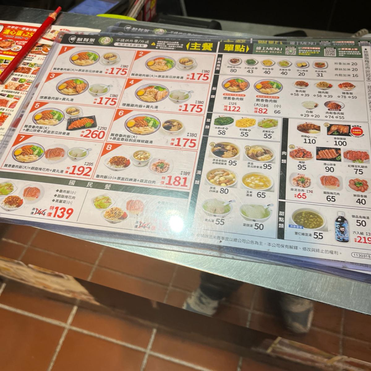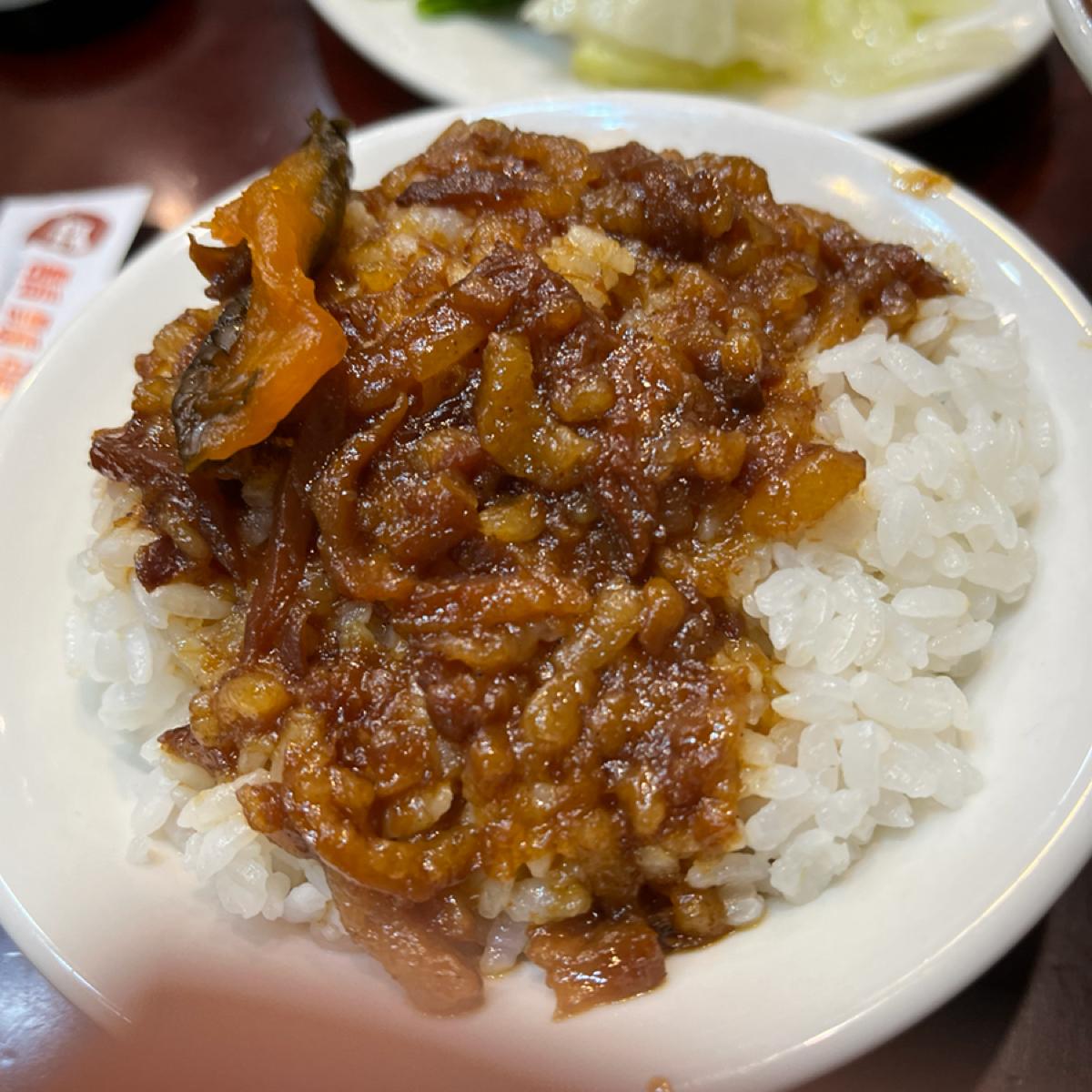 食事 小鹿魯肉飯、マリネは風味豊かで塩味があり、ご飯によく合います 赤もち米豚はコリコリしていて美味しいです。濃いめの味が欲しい場合は、ご飯と一緒にソースを追加することもできます。 緑の野菜はシャキシャキしていて新鮮で、他の濃い味のグレービーソースと合わせると味が薄まり、それぞれの気分に合わせて調整できます。