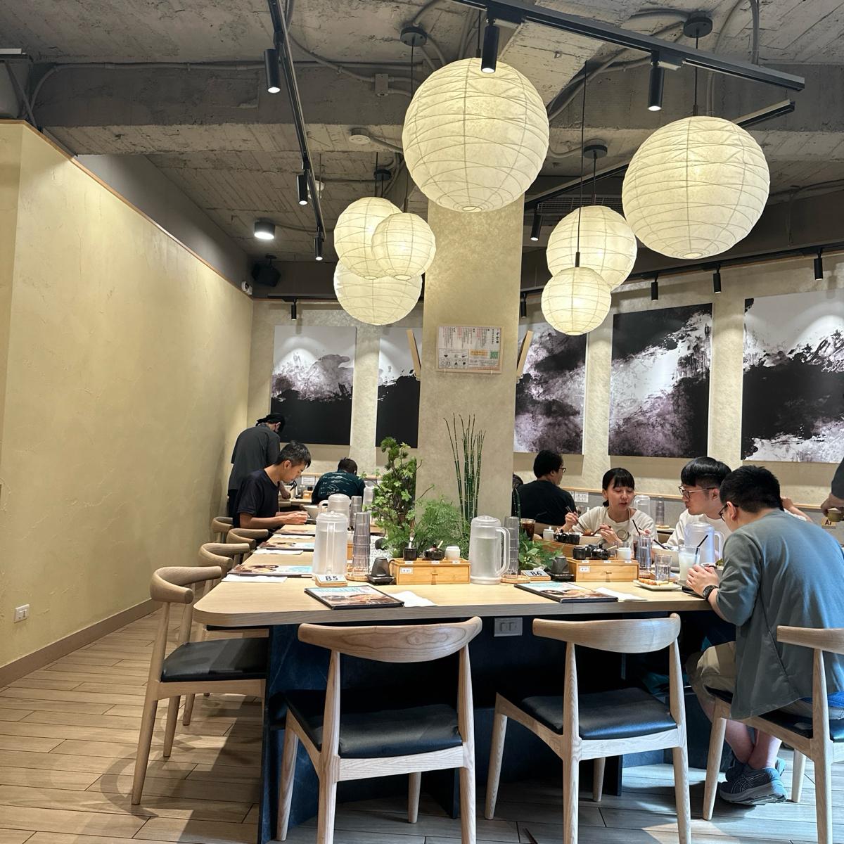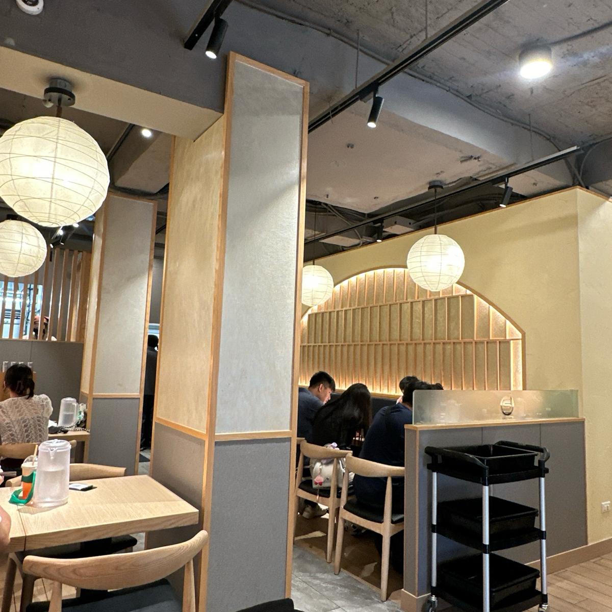 店内は明るくて快適で、内装も新しくシンプルです。天井にぶら下がっている白いランタンが空間全体に日本の純粋なスタイルを感じさせ、席の間隔も広々としていて、食事をしていても窮屈な感じは全くなく、とても快適です。