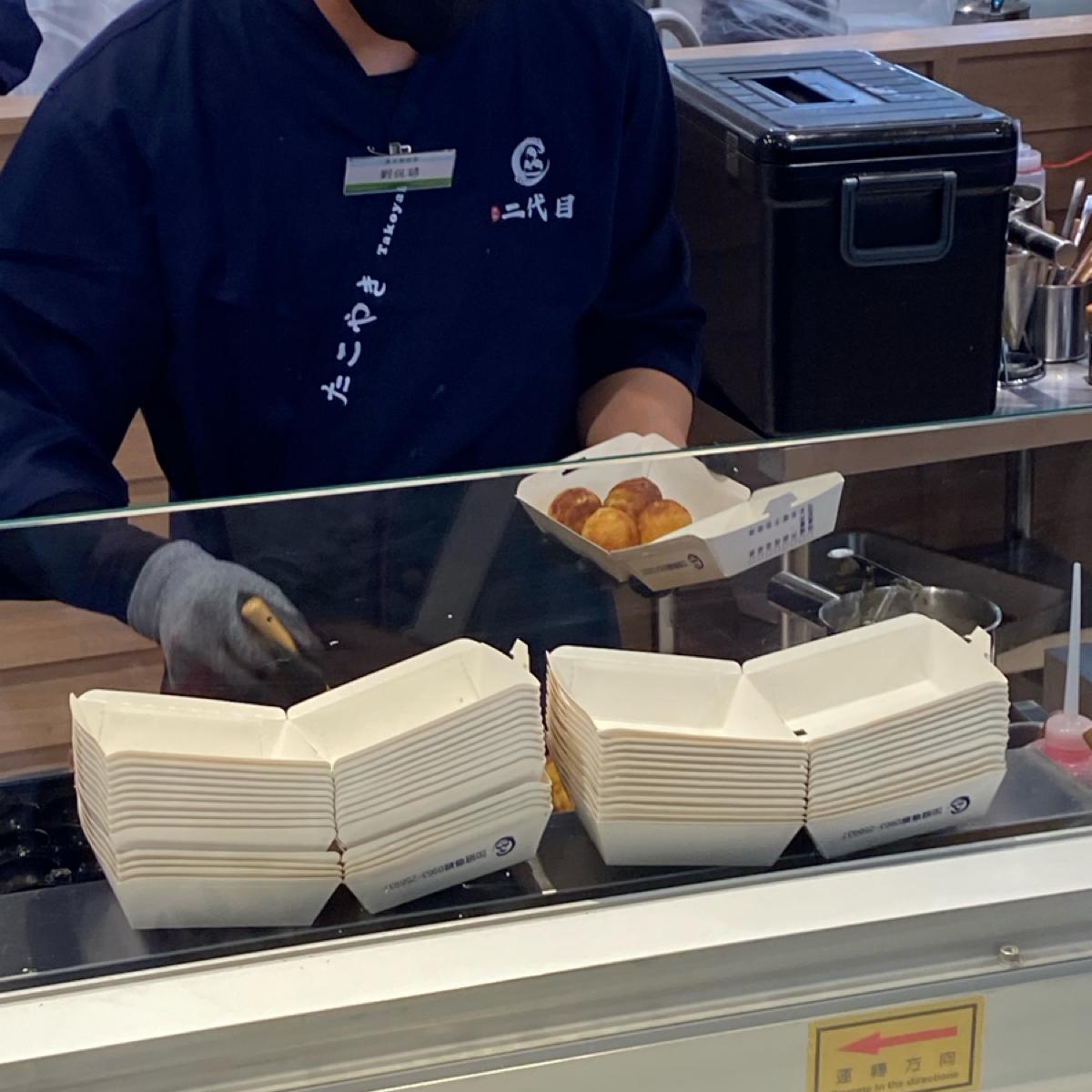 このたこ焼き屋さんには8種類の味があり、すべて均一価格で65ドル、6個入りです。お茶も販売していますが、私たちはオリジナル味をいただきました。
