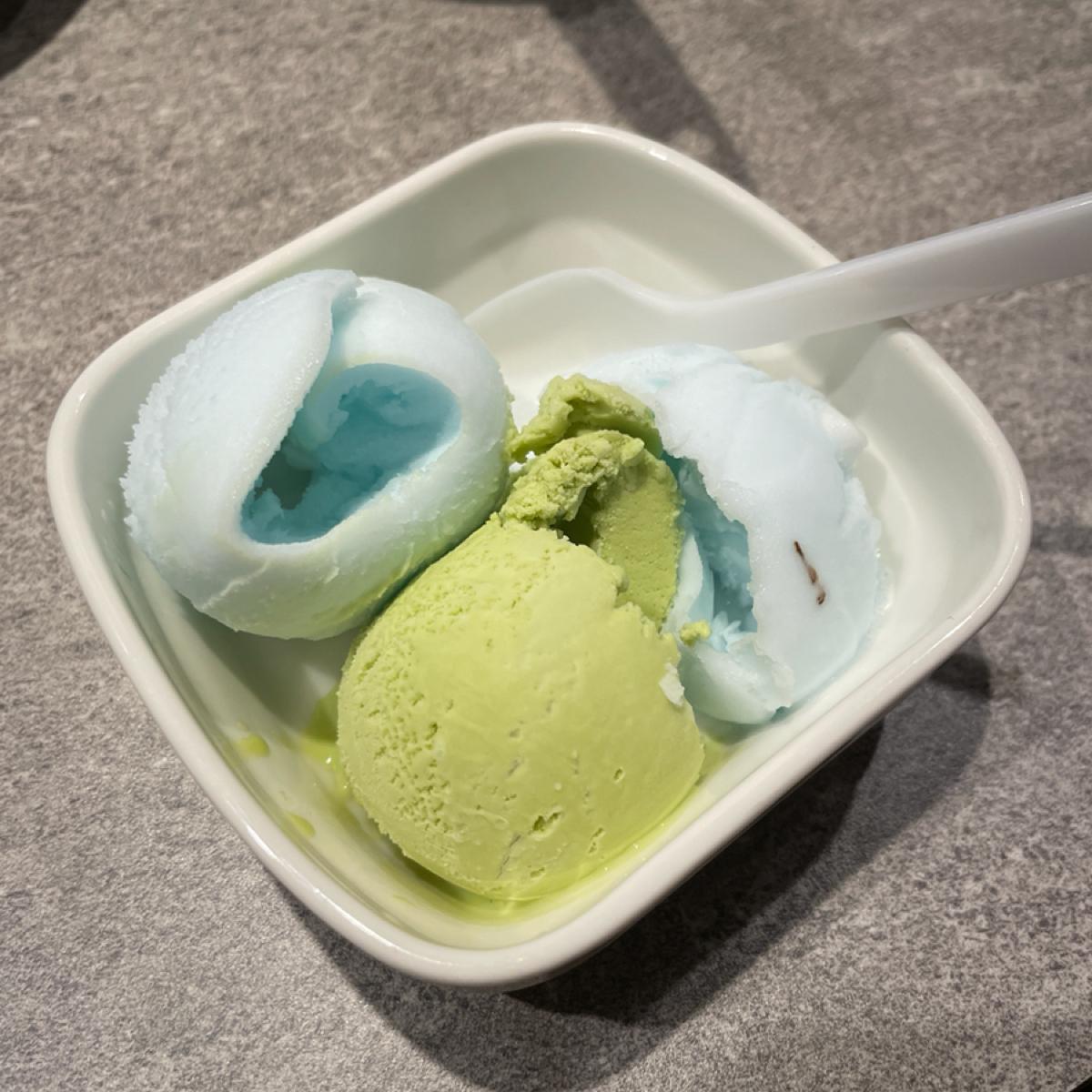 おかず、飲み物、アイスクリームは全てセルフサービスで、おかずの選択肢はそれほど少なくありませんでした。スタッフは補充も熱心で、2、3回行った際も空の皿は見当たりませんでした。飲み物はお茶、炭酸飲料、スムージーがあり、アイスクリームにはアイスクリームとソフトクリームがありました。アイスクリームを食べてみると、抹茶の方がラムネ味より美味しかったです。