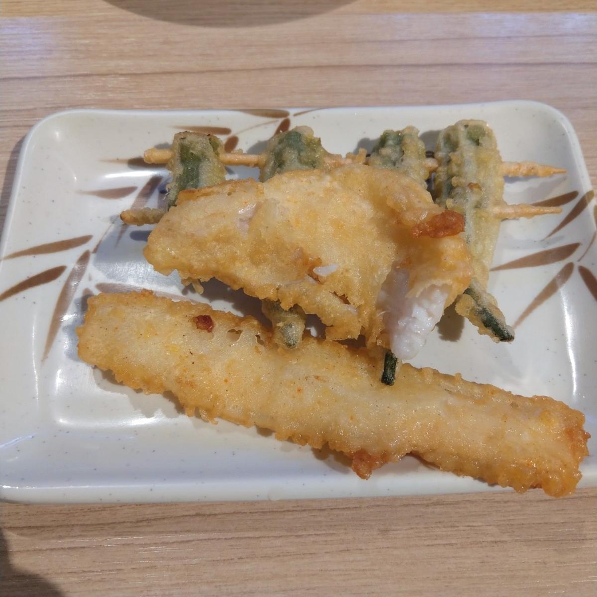 揚げ物:オクラ、白身魚、イカなど、全て事前に揚げて置いてありますが、揚げ皮は硬すぎず柔らかすぎず、普通に美味しいです。