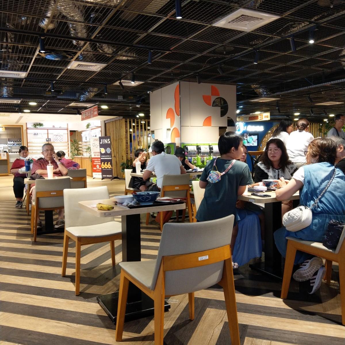 注文の流れは、右側の調理エリアで並んでから、店員に注文して、左に進んでカウンターで会計をするというものです。現金とクレジットカードが支払いに利用できます。(隣の全聯のレシートを見せると、普通の丼から大丼に無料でサイズアップが可能で、30元節約できます)支払った後は、壁の後ろにある調味料エリアでねぎなどの調味料を追加します。店内では他の店舗と共用のスペースで、広々と明るく、座席もたくさんありますが、注文せずに座席を占有する人も多いため、あらかじめ座席を見つけておくことをおすすめします。