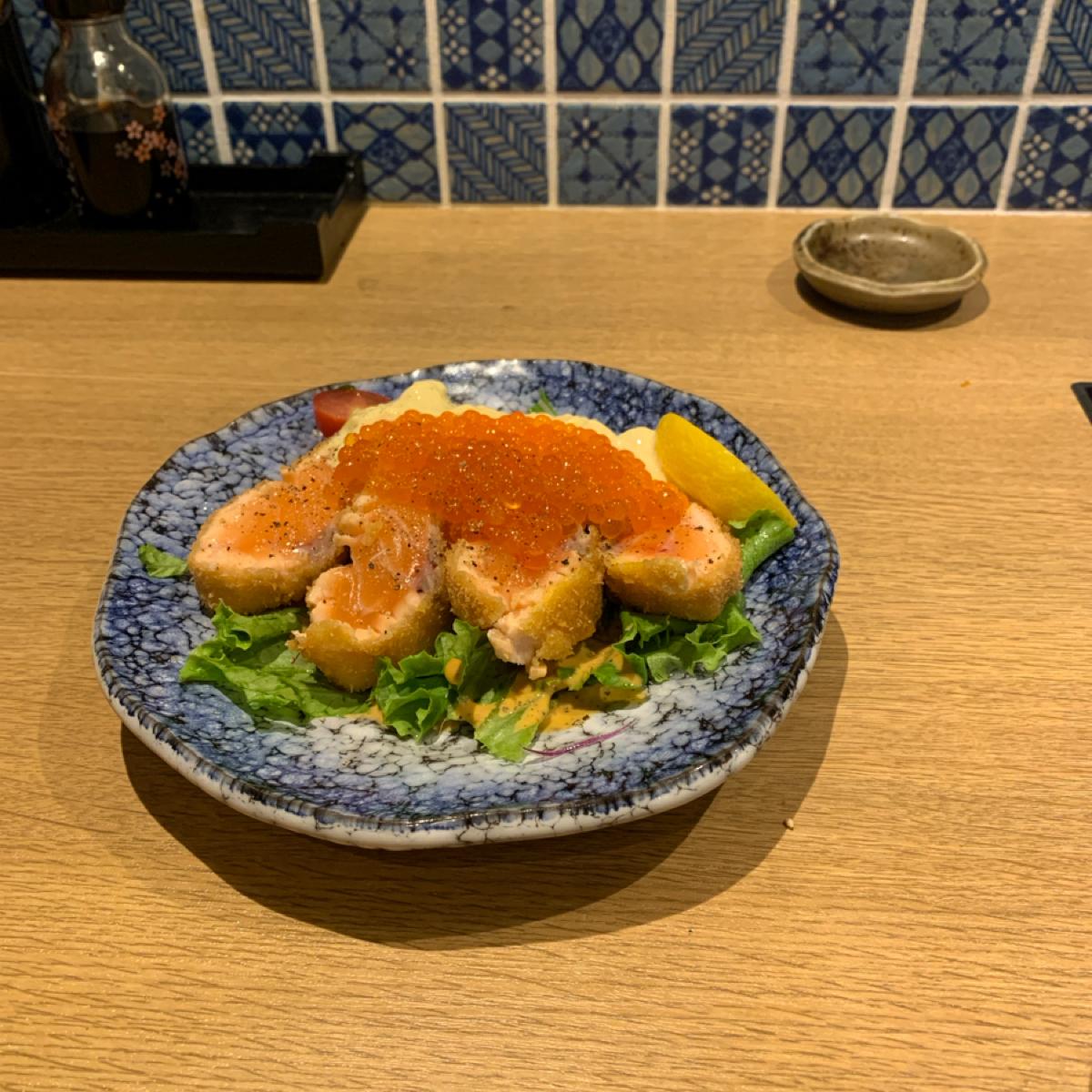 カラッと揚がったサーモンは中はレアで柔らかくて美味しかったです🐟
