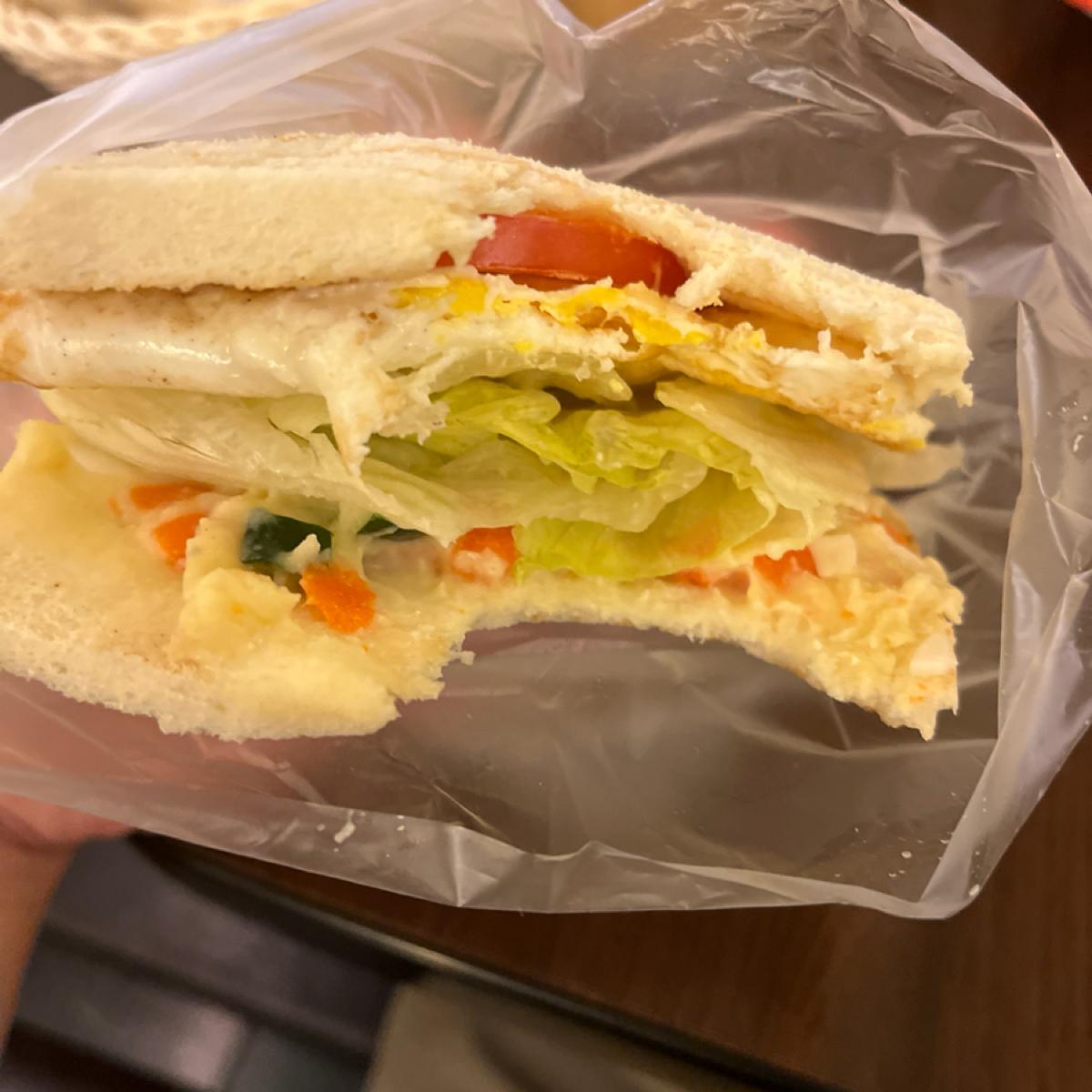 〉ポークフロスと卵のサンドイッチ NT$40 肉フロスは味が薄めで、少し辛口です。飲み物と合わせてください。