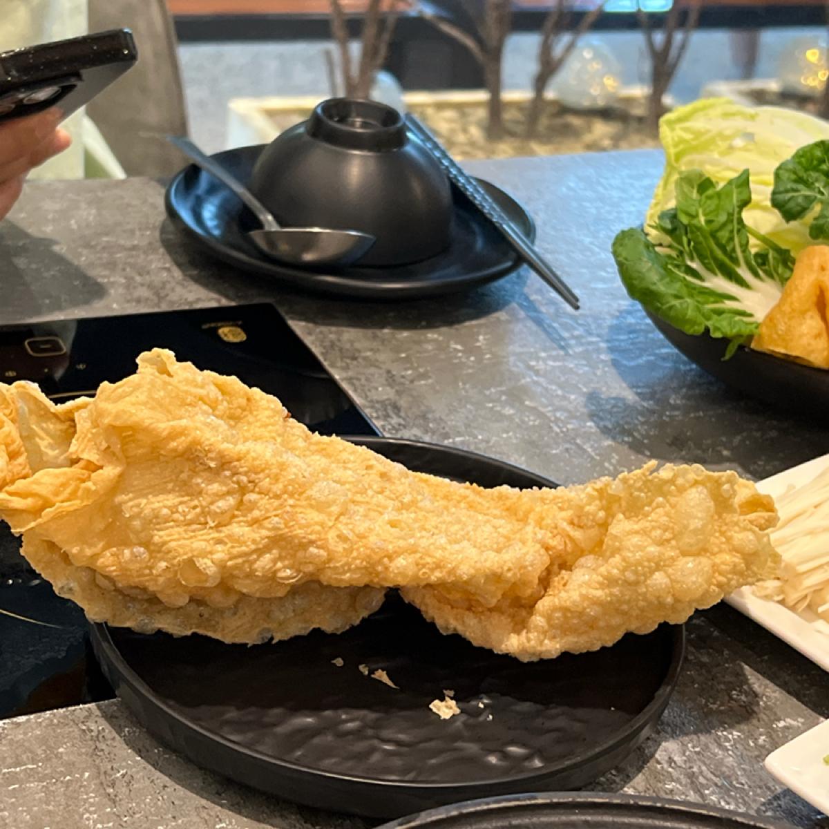 揚げ豆皮は熟食エリアにあり、何か特別なものかと思ったが、ただの一般的な揚げ豆皮だった。スタッフはそのまま食べて良いと言ったが、油の風味がかなり強かった…。
