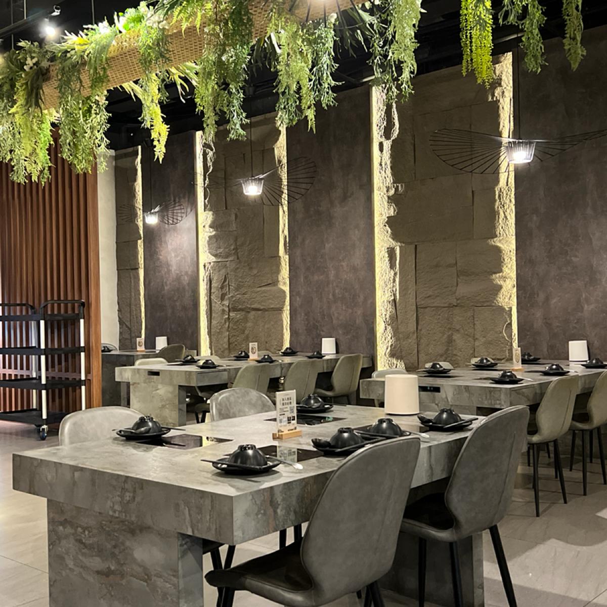 装飾デザインが独特で、店舗の心遣いが感じられる。訪問した日は多くのテーブルが空いていたが、スタッフが無理やりテーブルをくっつけようとしていた。後ろの二人用のテーブルが空いているのに、そのテーブルに移るかどうかすぐに尋ねてきた。なぜ4人用のテーブルを使わず、6人用のテーブルをくっつけさせたのかは納得がいかなかった。