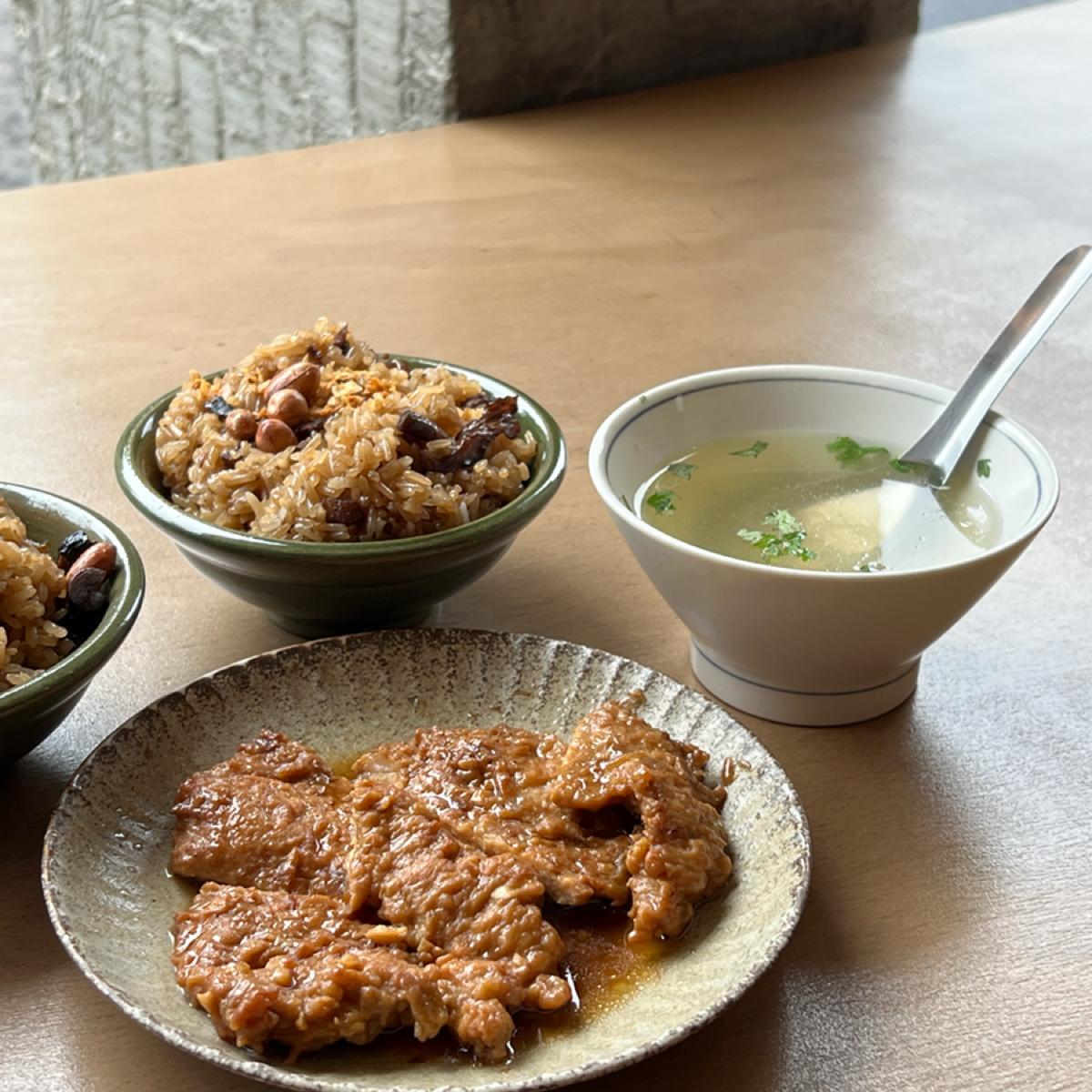 油飯は大きな器ではなく、中にはシイタケ🍄🟫やジャガイモ🥔が入っており、特に上に載っているガーリックフレークが特徴で、全体の組み合わせが進むにつれてますます香ばしくなります~