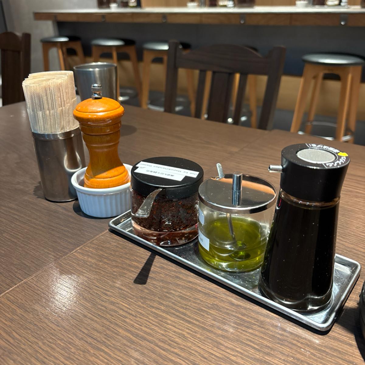 あさりの出汁は甘くて新鮮で、麺は少し細めでこのようなさっぱりとした味わいにぴったりです。半分食べた後、卓上の調味料を追加して味を変えることもできます。特別なグレープオリーブオイルがとても香ばしいです!