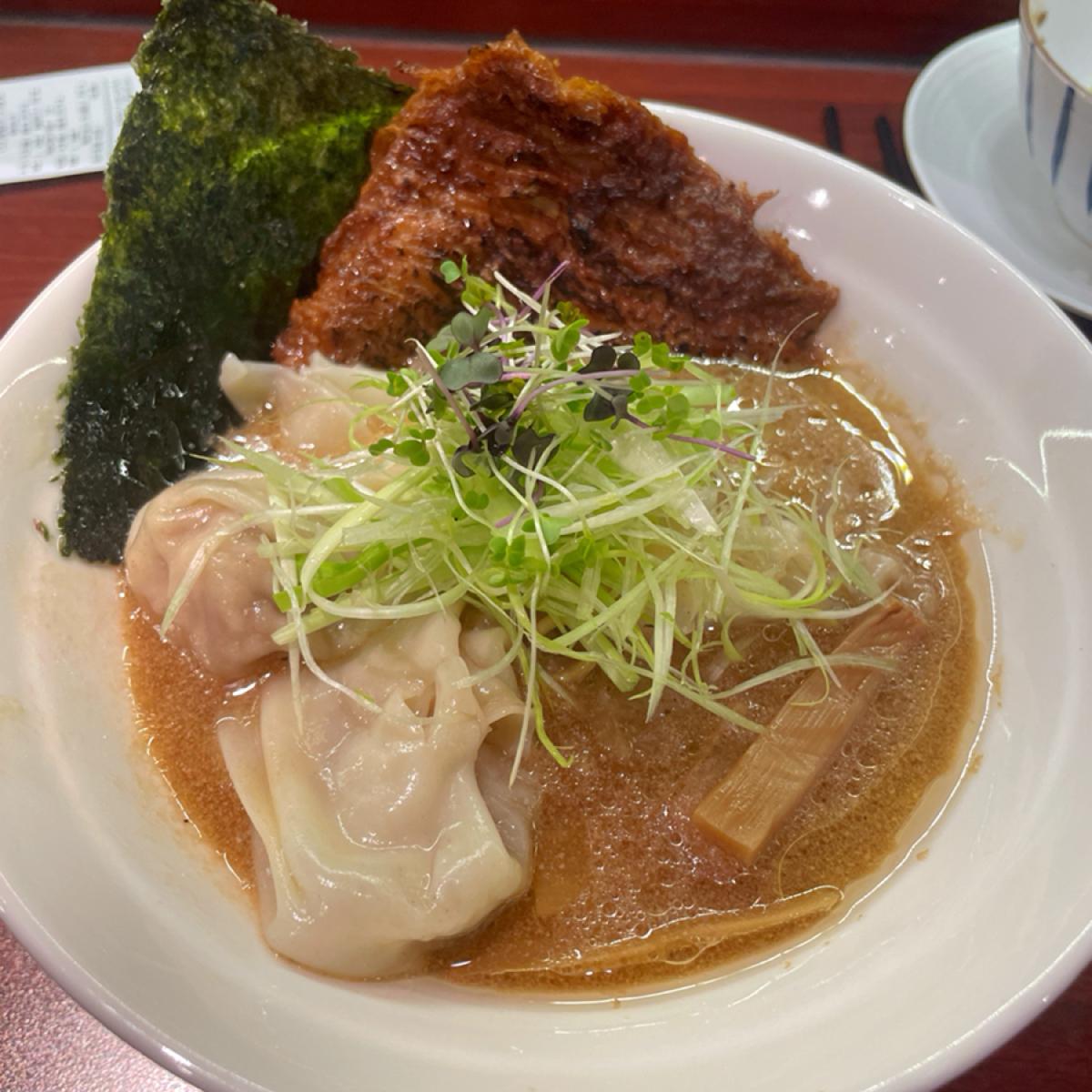 白福麺は濃厚なスープです!ナッツなどの食材を感じることができ、炙った豆包が超美味しい!あ、そういえば~今回は超満腹の餛飩もあって、これもとても美味しいよ!