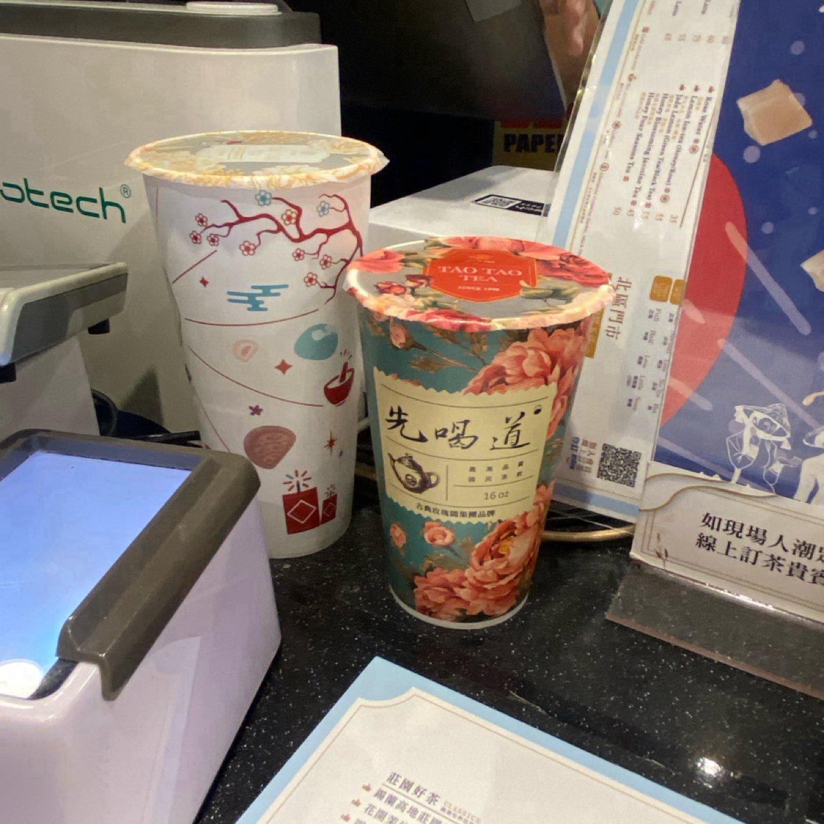 今日はイングリッシュローズラテ+餅($60+$12)を砂糖なし、氷なし、そしてスティフネックミルクティー(餅付き、$75)を砂糖半分、氷なしで注文しました。