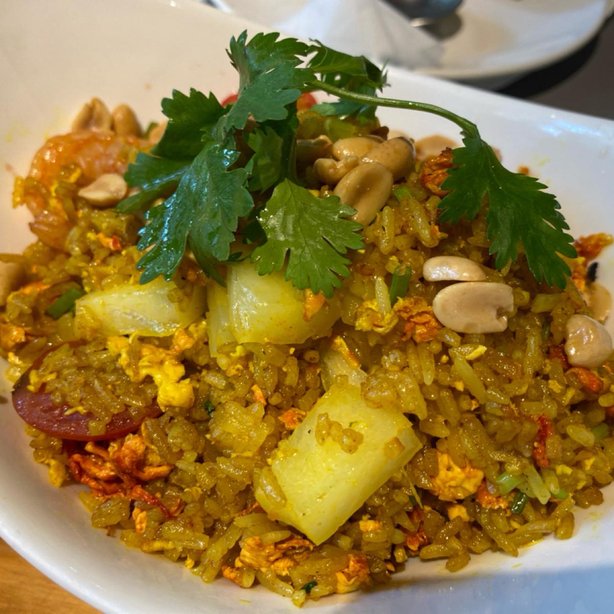 チャーハンはパイナップル、ピーナツなどが入った南陽風。