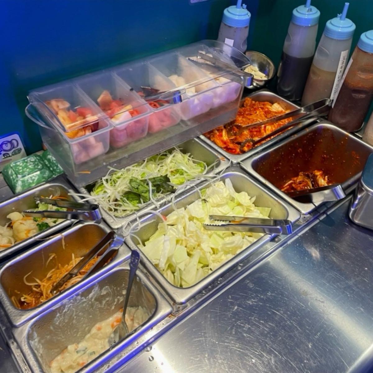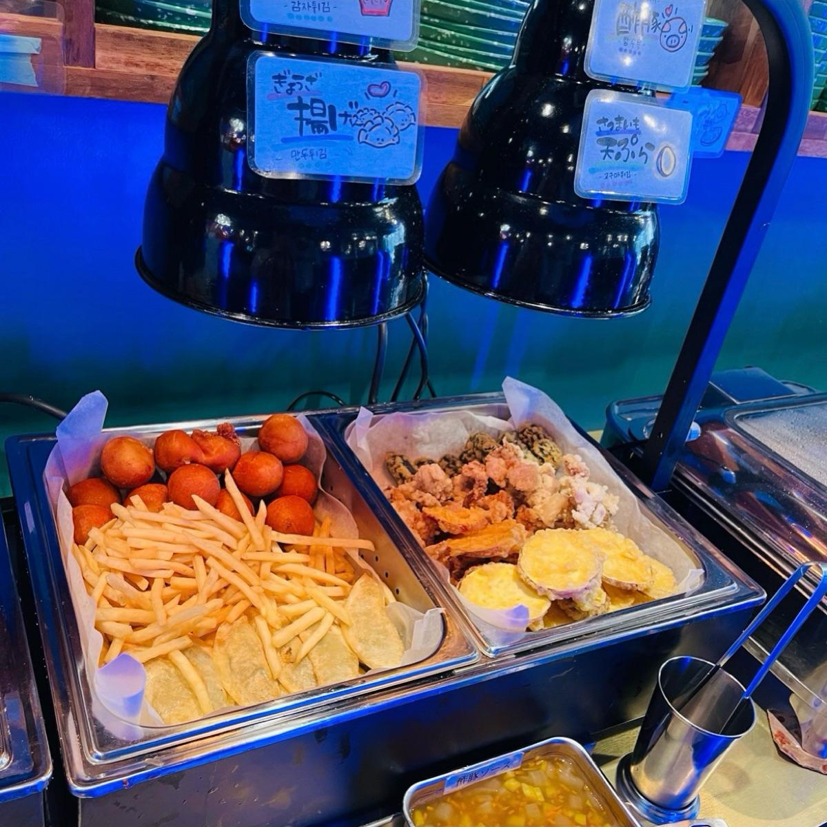 韓国料理のヤンニョムチキン・サムギョプサル・のり巻き・チヂミ・辛ラーメンなどがなんと食べ放題な贅沢です。