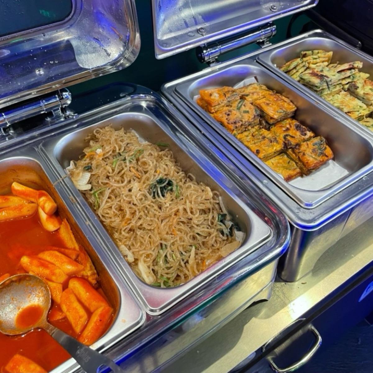 チキン・チヂミ・辛ラーメン・ポテト・チーズボールなど様々な韓国料理が多種類ずらりと並んでおり、韓国料理好きにはワクワクが止まりませんでした♡